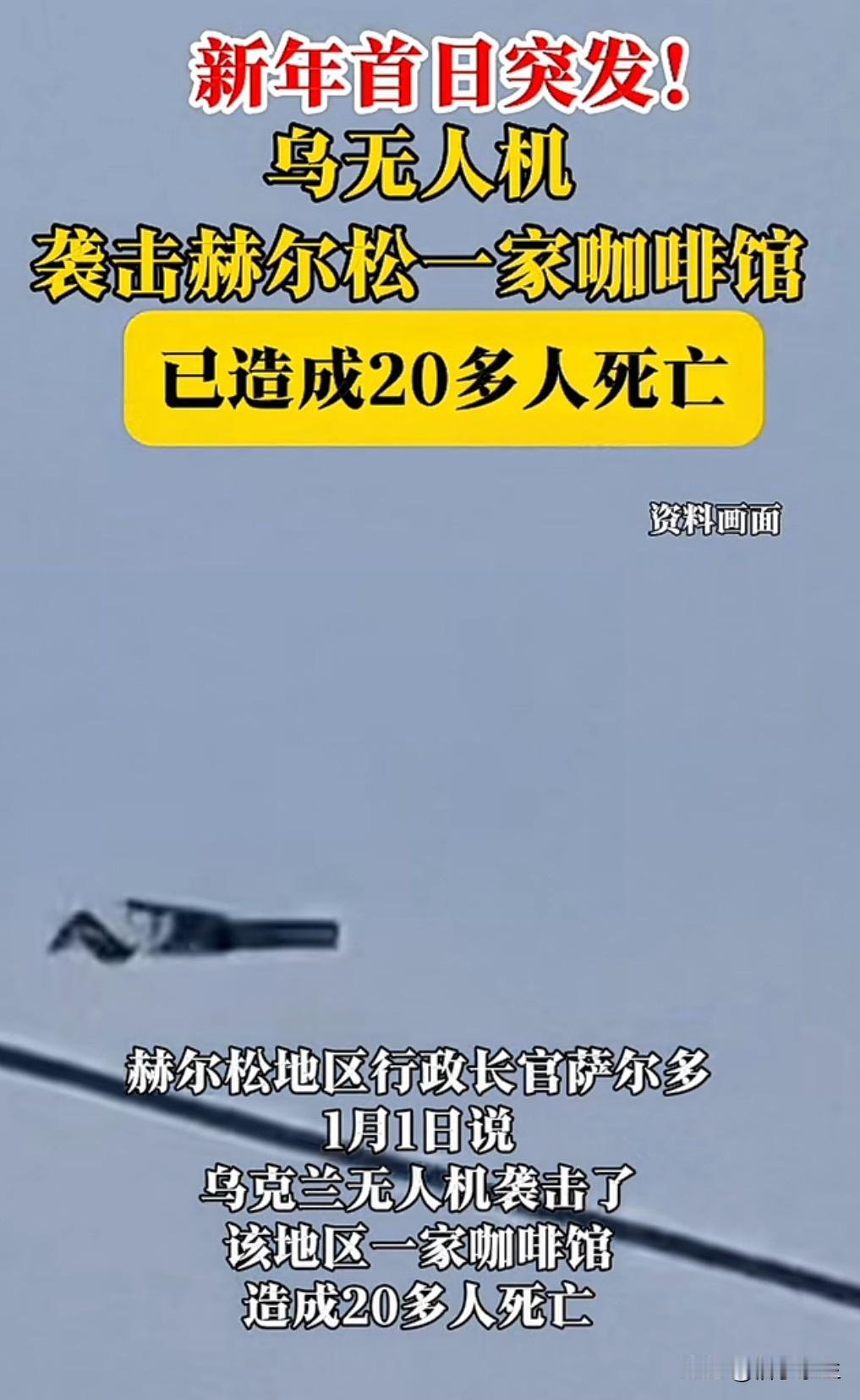 据俄罗斯媒体报道,乌克兰军队在跨年夜使用无人机袭击了赫尔松地区的一家咖啡馆,已造