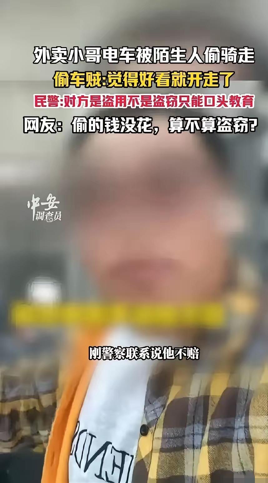 无锡警方火了。 原因是一个外卖小哥的车被偷了,他去报警。警方找到偷车贼后,偷车贼说他看着车好就骑出去逛了一圈。然后他就把车扔在路边了。 帽子叔叔就对外卖小哥说,这不算是偷窃,因为他没有私下买卖你的车,这就是偷用。只能口头教育。 法律讲“非法占有目的”没毛病,但执法不能只抠条文啊!外卖小哥的车是谋生工具,耽误接单的误工费、找车的折腾,这些损失难道就不算事儿? 拔钥匙这个动作多关键啊,分明是让车主彻底失控,这哪是单纯“盗用”那么简单。 法律要严谨,但更要贴合生活,不能让守法者受委屈,违法者轻飘飘过关。 真正的公平,是既守住法律底线,又能给普通人撑腰。警方完全可以多走一步,督促对方赔偿损失,而不是把难题丢给受害者。 你觉得这种“觉得好看就骑走”的行为该怎么处置才合理?来评论区说说你的看法~