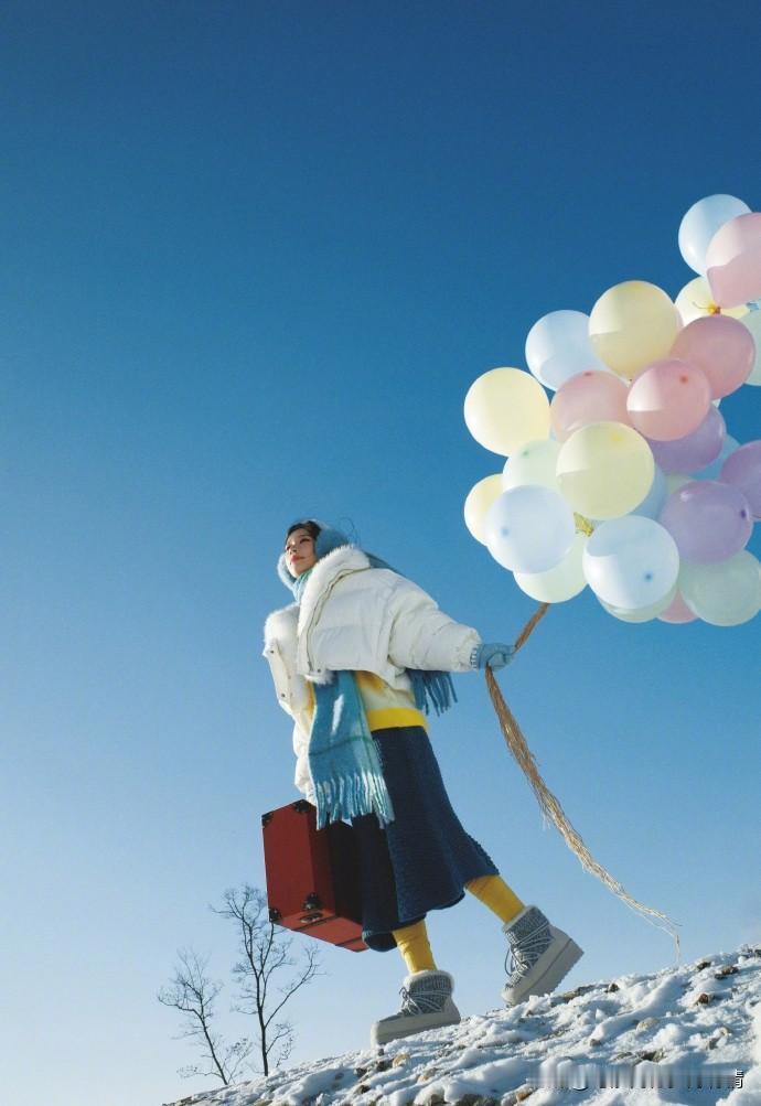 林允的新年雪地citywalk宛如冬日童话照进现实! 皑皑白雪间,她手持玫红伞而立,纯白棉服搭配蓝绿系绒饰,撞色搭配鲜活又灵动。 彩色气球簇在雪坡漾开温柔,冰棱背景下的回眸,将冬日的清冷与梦幻揉成一团浪漫。 每一个镜头都像从童话里截出的画面,雪地与少女的适配度,在她身上被诠释到极致。