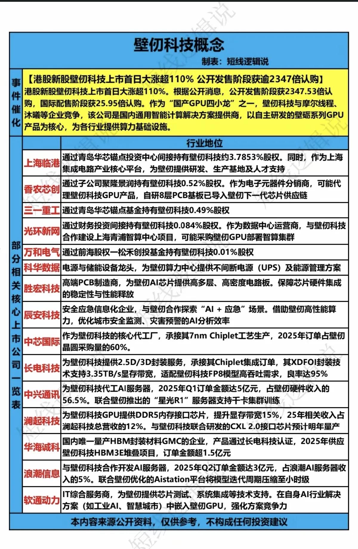 1月2日,节后A股这个板块有望大涨!!! 今日,壁仞科技在港交所上市,首日大涨超110%,公开发售阶段获超2347倍认购,作为国产GPU四小龙之一,后市可期,相关概念股有望大爆发,重点关注:香农芯创、长电科技、浪潮信息!!!