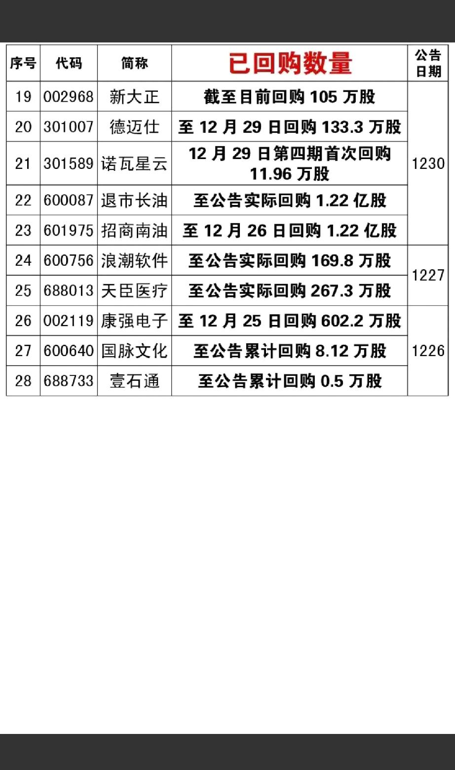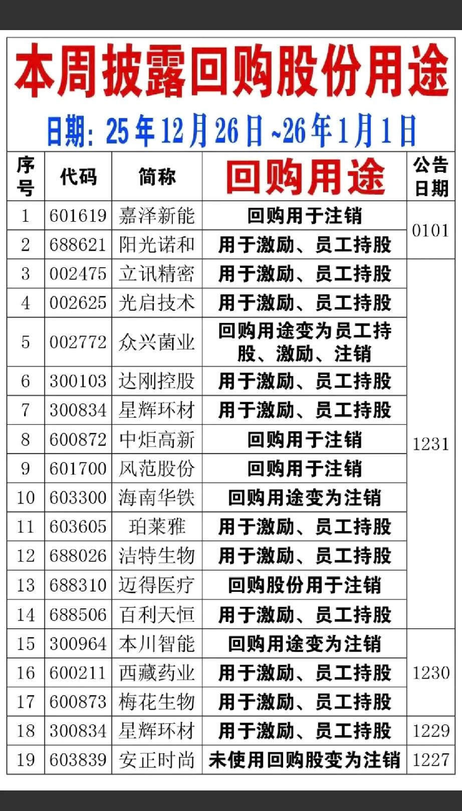 1月2日,节后A股这些股票有望大涨!!! 15家公司披露回购计划,重点关注:嘉泽新能拟回购2.2-4.4亿,后市值得高看一眼;中炬高新拟回购3-6亿,后市值得期待;百利天恒拟回购1-2亿,后市值得高看一眼;28家公司公告实施回购!!!