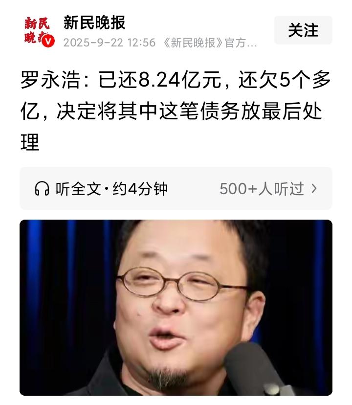罗永浩办的科技春晚,争议声不断,但是关于他捐款的事情,却引来一片赞扬, 据罗永浩说,所有门票费都会原路退回,而罗永浩将自费将原门票收入166万捐给香港火灾基金,捐款人落款是3500名购买门票的观众, 看上去确实挺感人的,是不是? 可是有一个问题,罗永浩现在还有巨额欠款未还,25年九月底他自己说,还了8个亿,还欠5个多亿,他还说他和他的家人,早已财富自由, 欠款5个亿仍然财富自由的人,不就是老赖吗? 有钱捐款,没钱还债,这不就是炒作吗? 快过年了,最痛苦的就是钱收不回来,那些口若悬河的演讲家,是不是应该体谅一下别人?