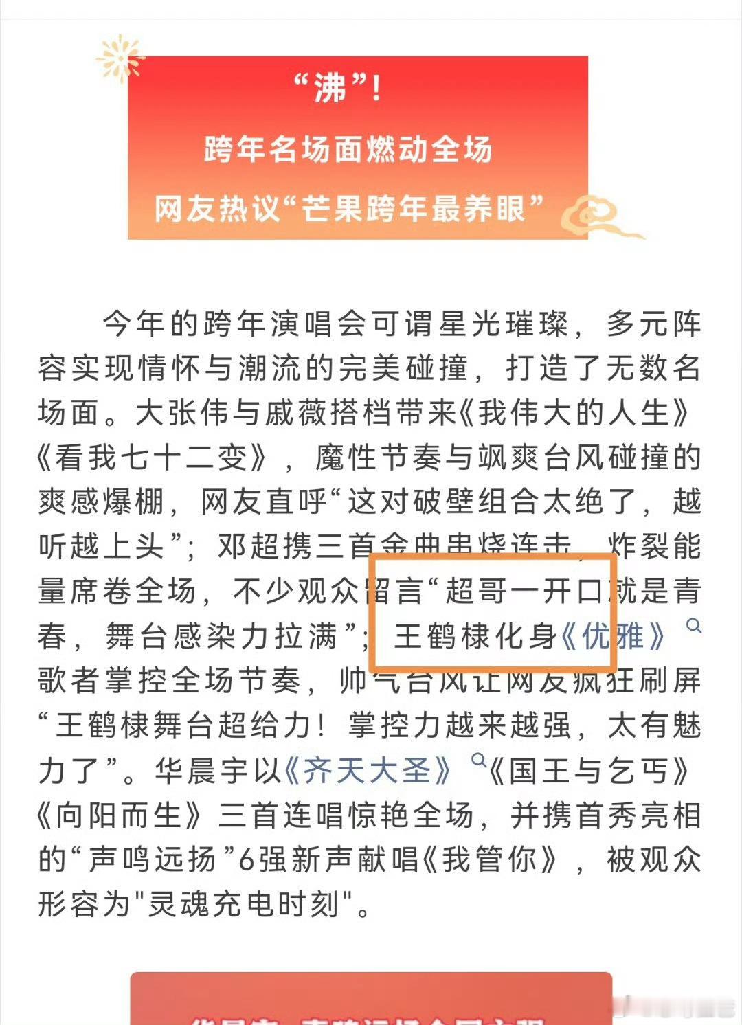 王鹤棣开年红到谁了央视、湖南跨年双登 王鹤棣出场均是各频道的收视第一,湖南唯一提到的男艺人;四登湖南跨年每年都引爆;🫘话题破千亿成为唯一集齐🫘千亿🍠百亿的男艺人(还是在大限流的情况下)而后lv线下铺大地广,轩尼诗直播。商务星光齐头并进