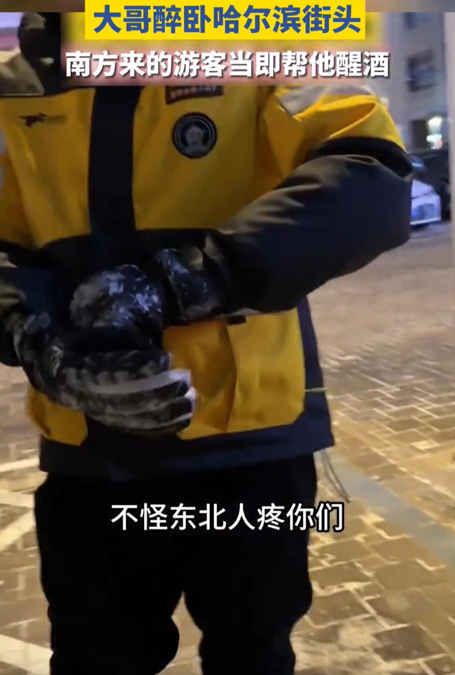 这真是救命了!黑龙江哈尔滨,一对南方情侣来跨年旅游,结果在路上却发现一名大哥喝醉躺在路边,于是连忙上前叫醒,还给他点了份外卖热饮帮忙醒酒,就连外卖小哥看到后都夸赞:不怪东北人稀罕你们这帮南方小土豆 跨年夜当天,情侣在逛街时忽然看见路边雪堆里好像躺着个人。两人赶紧上前看,发现是个大哥,坐在雪里靠着墙,一身酒气,说话都含糊了。这天寒地冻的,要是真在这儿睡一夜,后果不敢想。情侣俩没犹豫,蹲下来试着叫醒他 大哥迷迷糊糊睁开眼,听见女子口音,居然还能含糊地问:你们是南方小金豆吗? 女子一边应着,一边拿出手机点了份热饮外卖,想着让大哥喝点热的醒醒酒。没多久外卖小哥到了,一看这场面也有点愣。听明白是咋回事之后,外卖小哥挺感动,说这真是救命了,然后也掏出手机帮忙联系大哥的家人 等家人来的那段时间,情侣俩和外卖小哥都在旁边守着,直到确认大哥安全了才离开。外卖小哥后来还感慨:不怪东北人稀罕你们这帮南方小土豆 有网友说:这个真的是救他命了。我在二十年前治疗一个人,在东北喝多了在室外睡着了,被人救醒了后四肢全部坏死了,截了十个手指和十个脚趾,非常可惜 说实话,这个真不夸张,在东北那种温度下,喝醉了躺在室外,本质上就是在跟低温硬扛。人一喝多,血管扩张,体表觉得不冷,实际是在疯狂散热,身体的自我保护直接失效。睡着之后不是慢慢冻,是突然垮 所以前面那对情侣做的事,真的不是多此一举。要是再晚一点,哪怕同样被发现,结局都可能完全不一样。热饮、叫醒、联系家人,每一步看着普通,其实都是在跟时间抢 当然,双方的互动也挺温暖。南方游客在东北被叫“小土豆”,本来只是个玩笑般的称呼,但在这里成了拉近距离的契机。大哥哪怕醉着也能认出南方口音,还带着调侃的语气问出来,说明这种称呼背后没有恶意,反而有种熟人间的亲切