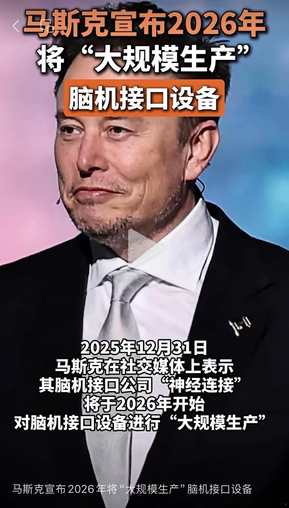 马斯克放话:2026年大规模量产脑机接口!这会不会是下一个“航天热点”?商业航天启动,不少人抓住了机会。如今脑机接口将成新风口?会不会再现航天发展那样的行情?