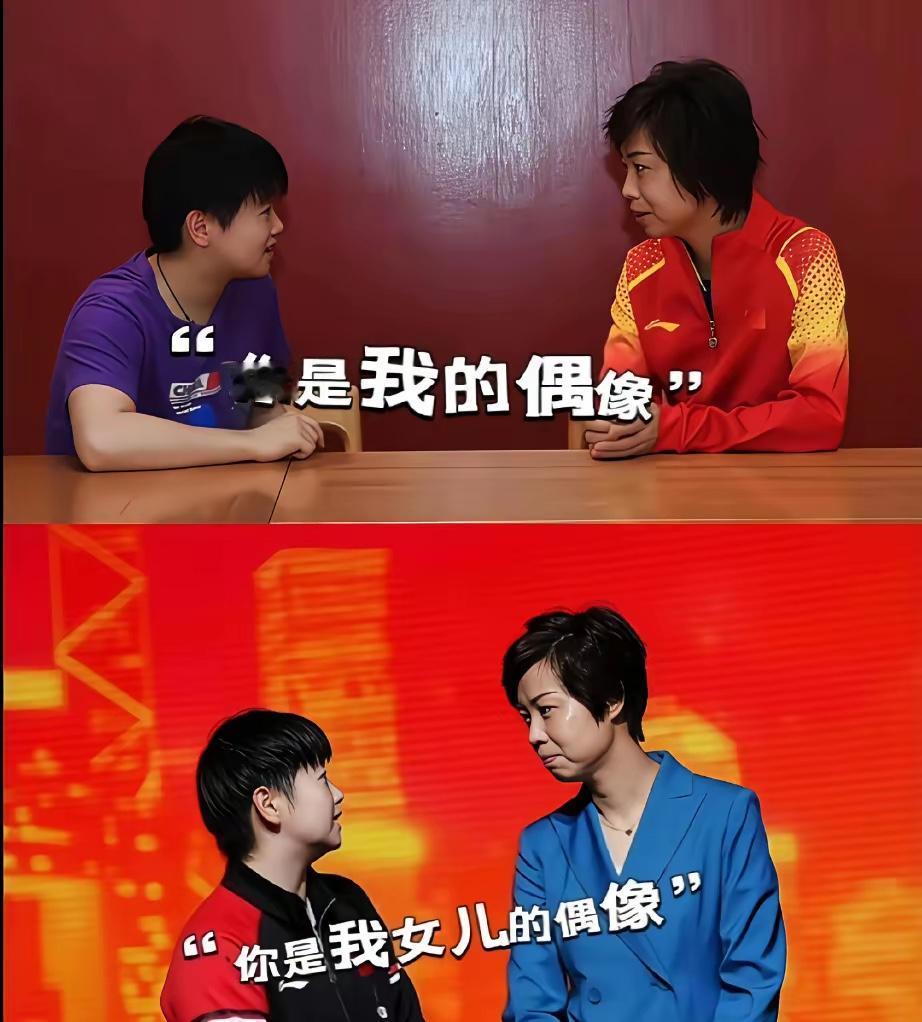 莎莎这一次,被张怡宁“怼”得无话可说! 小魔王莎莎对张怡宁说:大魔王,你是我的偶像啊! 大魔王针锋相对,呵呵一笑说:可是你要知道,你也是我女儿偶像啊。 莎莎终于无法可说了。 第一局:大小魔王打成 1:1 平局。 接下来,大小魔王就可以友好交流了,哈哈。