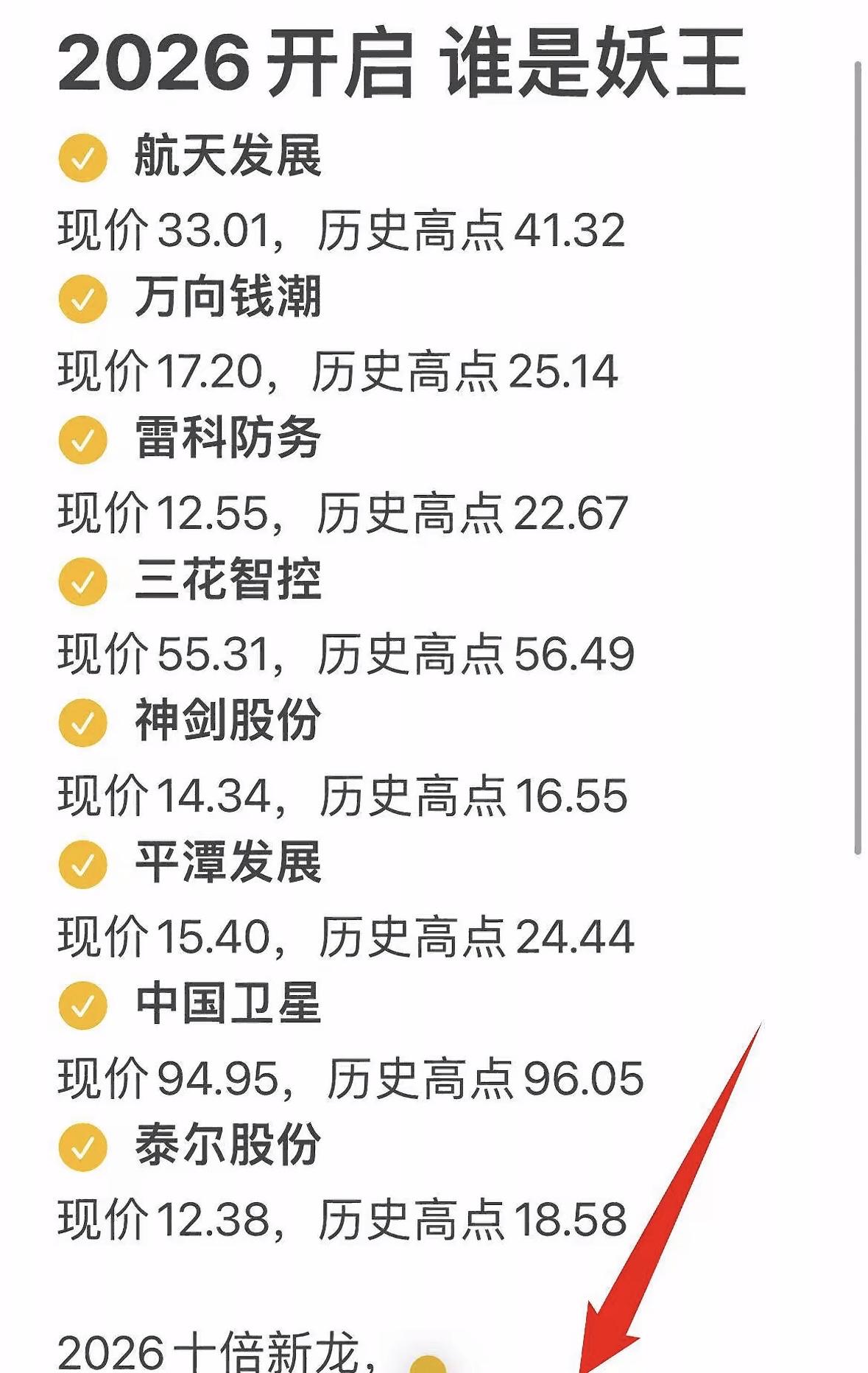 2026年谁会是妖王?盘点潜力股!🔥 "妖股盘点:航天、 万向等潜力股现价低位, 历史高点可期,静待2026新龙头爆发!"