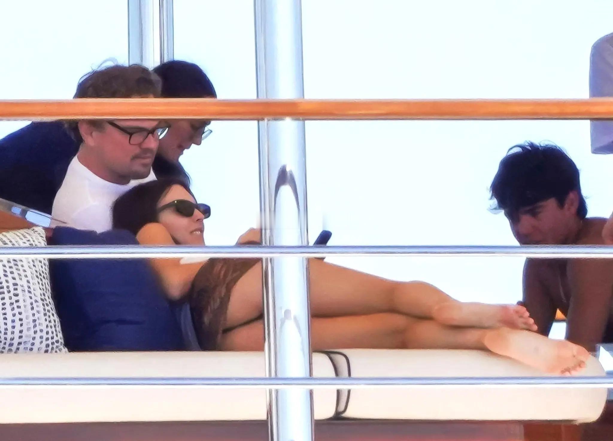 贝佐斯和桑切斯的欧洲游艇度假👇游艇上好多人啊🙉除了依偎在一起的小李子和女友Vittoria Ceretti外,还看到了桑姐的前男友(大儿子的爸)也在噢(图五箭头处)