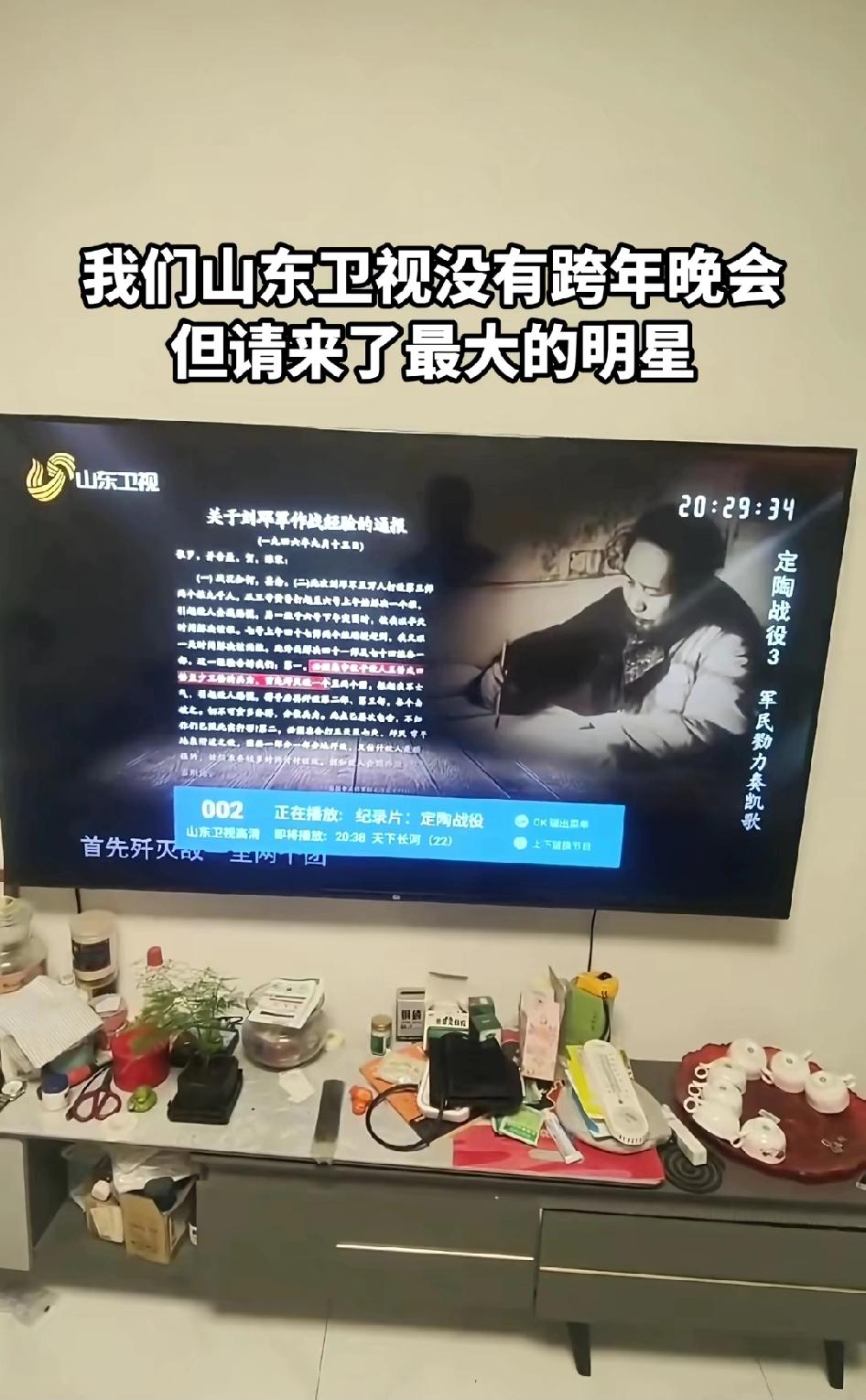 山东这一点,在经济上输了,政治上赢了,但总归是赢得,因为政治主导经济,全运会舞抗日狮子是有原因的 山东卫视是战备电视台,不允许过度娱乐,记得小时候山东台就放毛主席的纪录片。搞跨年演唱会,都是资本推波助澜捞钱的鬼把戏。山东人深知春节才是传统新年!元旦只是个时间界限!相信山东卫视春节会出大招