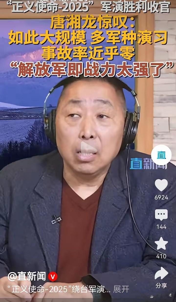 台湾名嘴唐湘龙直言,大陆“正义使命-2025”军演虽狠狠震慑了台独分子,但反独促统的台湾民众却在担心被牵连,而他更盛赞这场大规模军演的事故率近乎于零,堪称高品质效率的典范。 很多人以为军演是“威慑为主”,却没看清背后的核心逻辑。反独民众怕的不是解放军的炮火,而是台独分子狗急跳墙的疯狂反扑! 民进党当局把台湾变成“火药桶”,一边拿着400亿美元军购讨好美国,一边把民众绑上“台独”战车,真到局势紧张时,最先遭殃的就是普通百姓。这哪是“两岸对立”,分明是台独势力在祸害自己人。 唐湘龙夸的“事故率近乎零”,可不是随便说说的含金量。要知道海陆空火箭军多军种协同,在台岛周边5个区域展开封控演练,既要精准锁定军事目标,又要避开民用设施,这种难度堪比“在针尖上跳舞”。 反观台军自己的“汉光”军演,几乎每次都出事故,士兵受伤成常态,两相对比,谁在守护和平、谁在制造危险一目了然。 更狠的是,解放军的“精准打击”早就练到了骨子里,只针对台独分子的军事设施和首恶目标,就是怕伤及无辜同胞。 台独分子才是真正的“安全隐患”。赖清德之流一边喊着“维持现状”,一边推动防务预算涨到GDP的5%,还勾结外部势力搞“倚外谋独”,把台湾往战争边缘推。 800万台湾民众发起“弹劾赖清德”联署,就说明大家早就看清了他们的真面目。 解放军的军演越有力,台独分子的嚣张气焰就越收敛,反独民众的安全反而越有保障,这才是最朴素的逻辑。 说白了,大陆从来没想过伤害台湾同胞。从惠台措施到精准军演,每一步都是为了遏制分裂、守护和平。 那些担心被牵连的民众,真正该警惕的不是对岸的钢铁洪流,而是身边拿着民众安危赌政治前途的台独分子。 各位读者你们怎么看?欢迎在评论区讨论。
