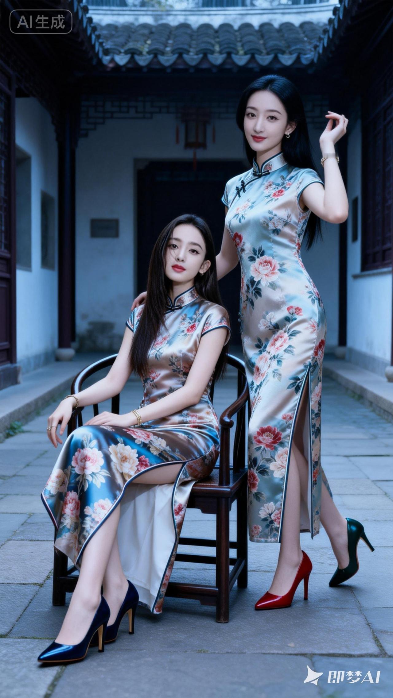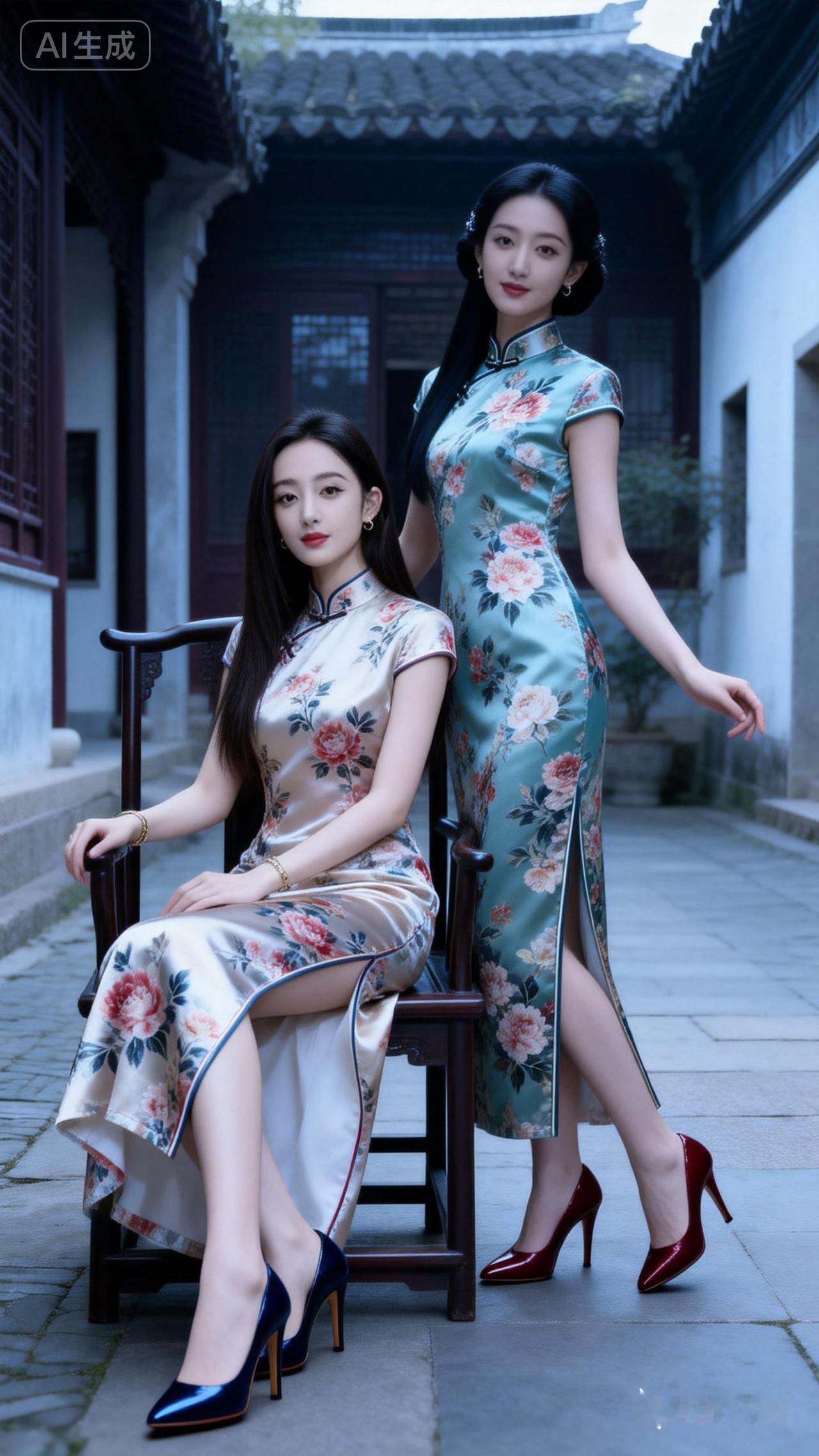 古典与现代的碰撞,旗袍的优雅与高跟鞋的时尚。