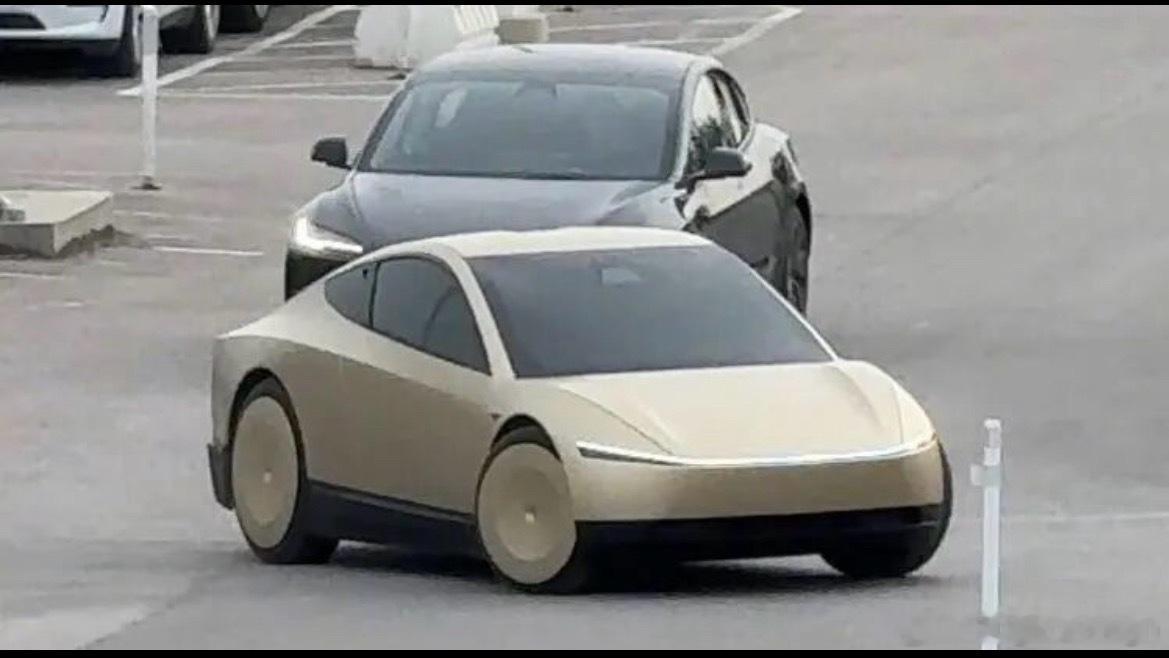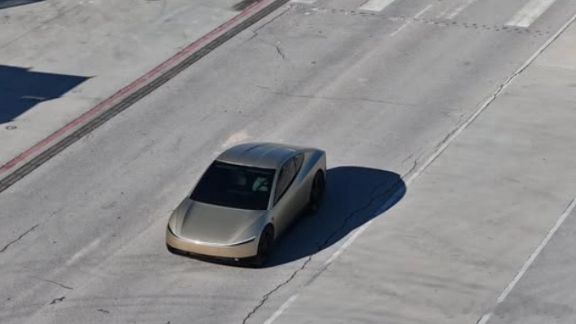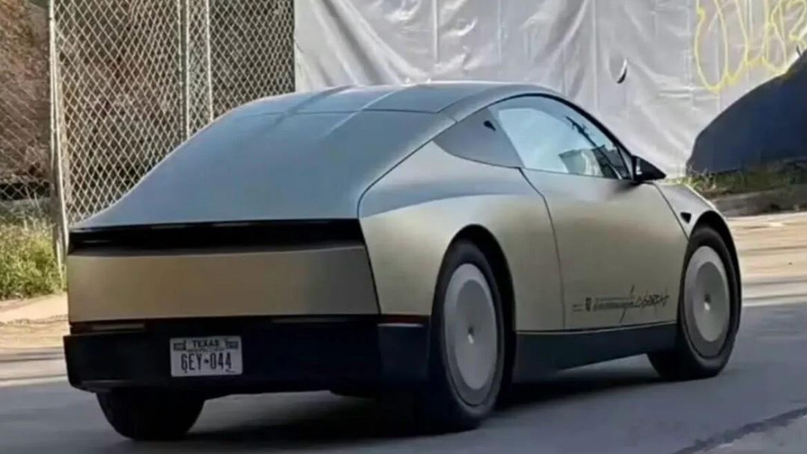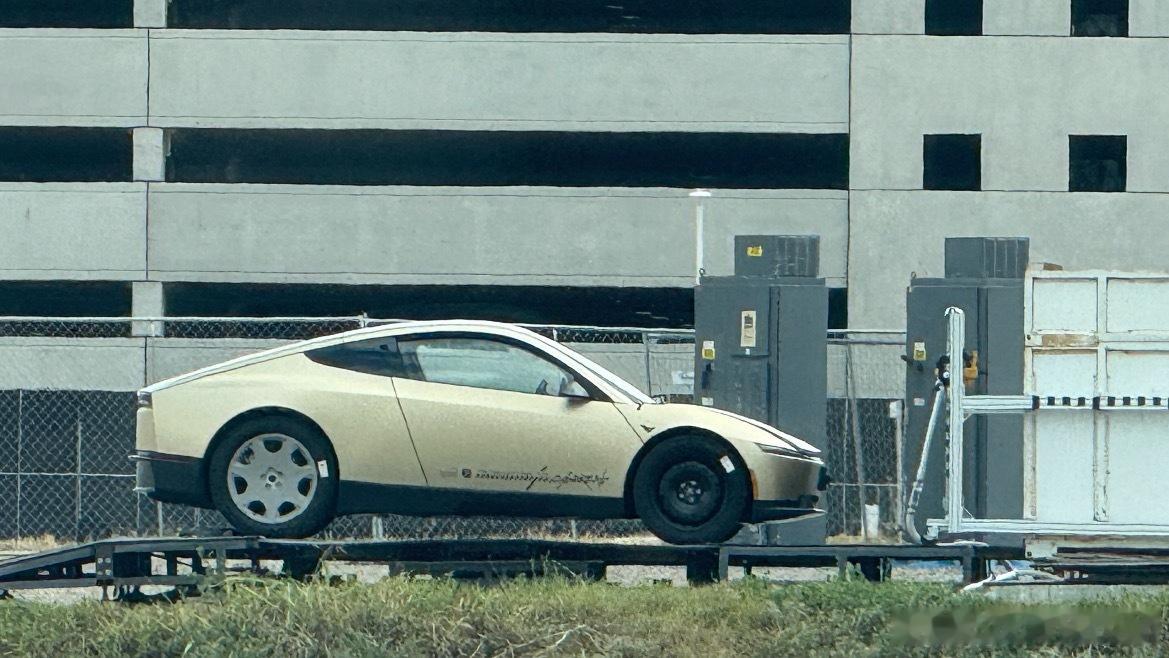 特斯拉Cybercab量产版实车图来了从后侧视图看还挺有肌肉感但其他角度看么,感觉额头高了一点