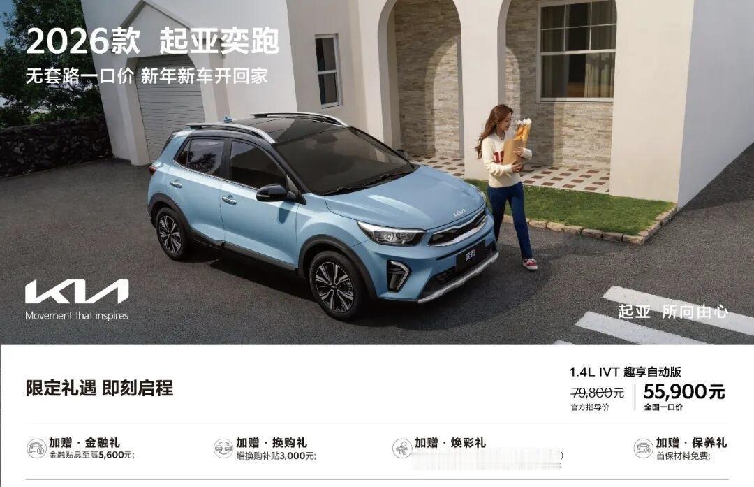 2026年,中国汽车市场第一枪竟然是韩系车起亚率先发起的,全国实行一口价,杜绝4S中间商赚差价,对于燃油车而言,这算得上是历史性的的突破。 1月1日,起亚中国正式宣布,针对2026款奕跑和K3车型实施全国统一售价政策。其中2026款奕跑1.4L IVT趣享自动版定价5.59万元,K3 1.5L舒适优享版定价6.99万元。 这一举措意味着消费者在全国任何一个地方都是统一价,不过,这样的改革有些晚了,毕竟起亚的4S店真是太少了,下一步,起亚如果想要逆风翻盘,完全可以取消4S店,直接在网上线上统一出售,工厂直接发货,4S店变成车辆交付中心,岂不美哉?这又是一次节约成本的历史性变革!