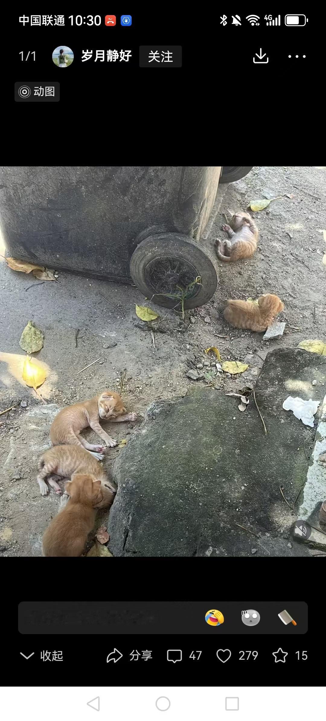 出门看到这一幕,好心寒。我前阵子刚收了四只,现在应该两个月大啦,以后就在车库里生活,很暖和,母的就绝育! 可怜的小猫,愿被好心人善待收养。这么冷的天气,这么小的小生灵,怎么忍心。 有的人就只是养,但不会带去结扎,小猫随处丢,真缺德。 这种小猫咪可以先放到家里养着,给它们找领养! 应该对流浪猫和家猫,控制繁育,做负责的养猫人。 最最痛恨弃养动物的人,贫穷不是你的原罪,内心歹毒就不可原谅了,弃养者与虐杀者同类!