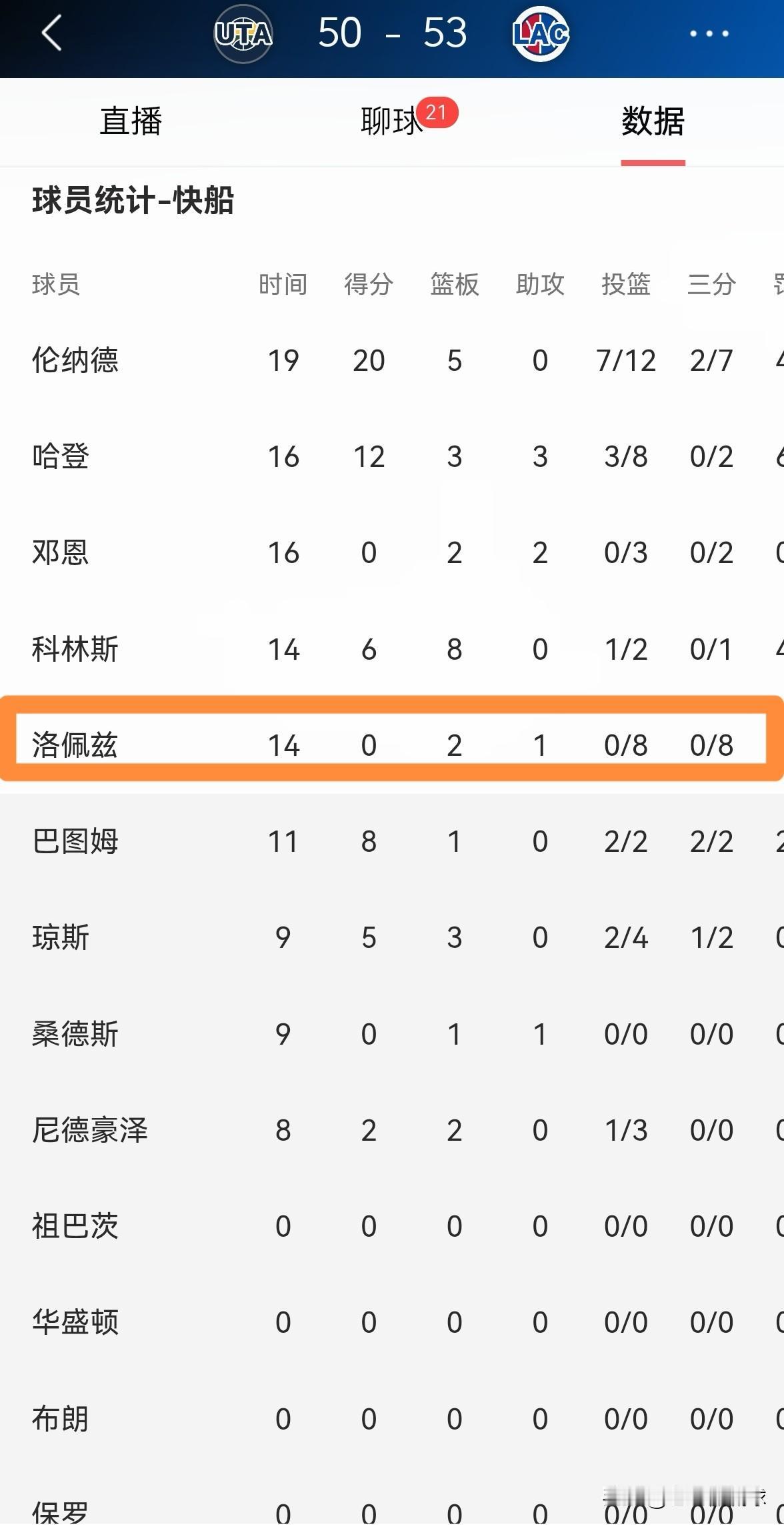 我一定要怒喷快船老将大洛佩兹,他真是一个死脑筋!在今天快船主场迎战爵士的上半场比赛中,大洛佩兹在三分手感冰凉的情况下依然坚持强投,导致球队丧失了大比分的领先优势。 在上半场比赛中,大洛佩兹首发出战14分钟,三分球8中0怒砍0分。 作为一名总冠军级别的中锋,大洛佩兹在投篮手感糟糕的情况下依然不知道传球,这样的行为严重的伤害到了球队的进攻。