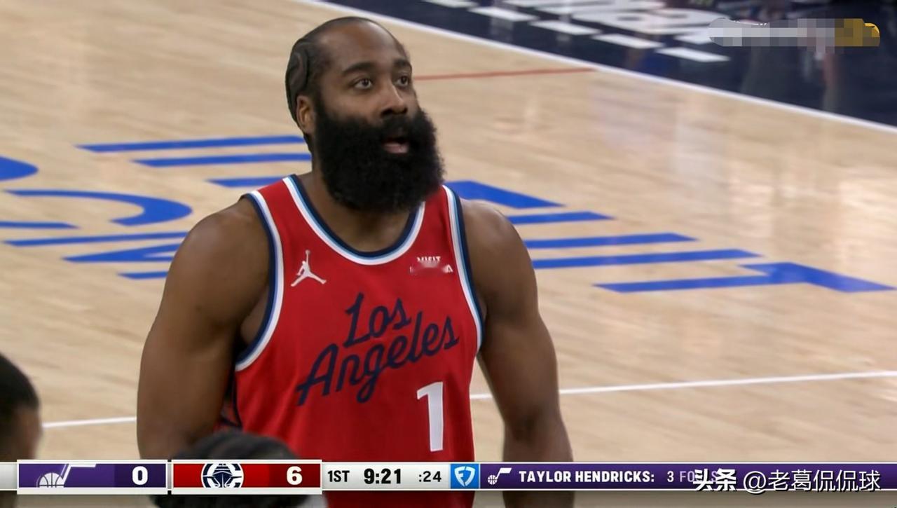 快船当家控卫哈登真是出工不出力!在今天快船主场迎战爵士的比赛中,目前双方半场战罢,快船以53:50领先对手。在前两节比赛中,哈登首发出战16分钟,投篮8中3,其中三分球2中0、罚球7中6得到12分3篮板3助攻,他的场上正负值为+7。 值得注意的是,哈登在第一节比赛中就砍下11分,但是他在第二节比赛中明显进攻欲望不足仅仅得到1分,给人一种出工不出力的感觉。