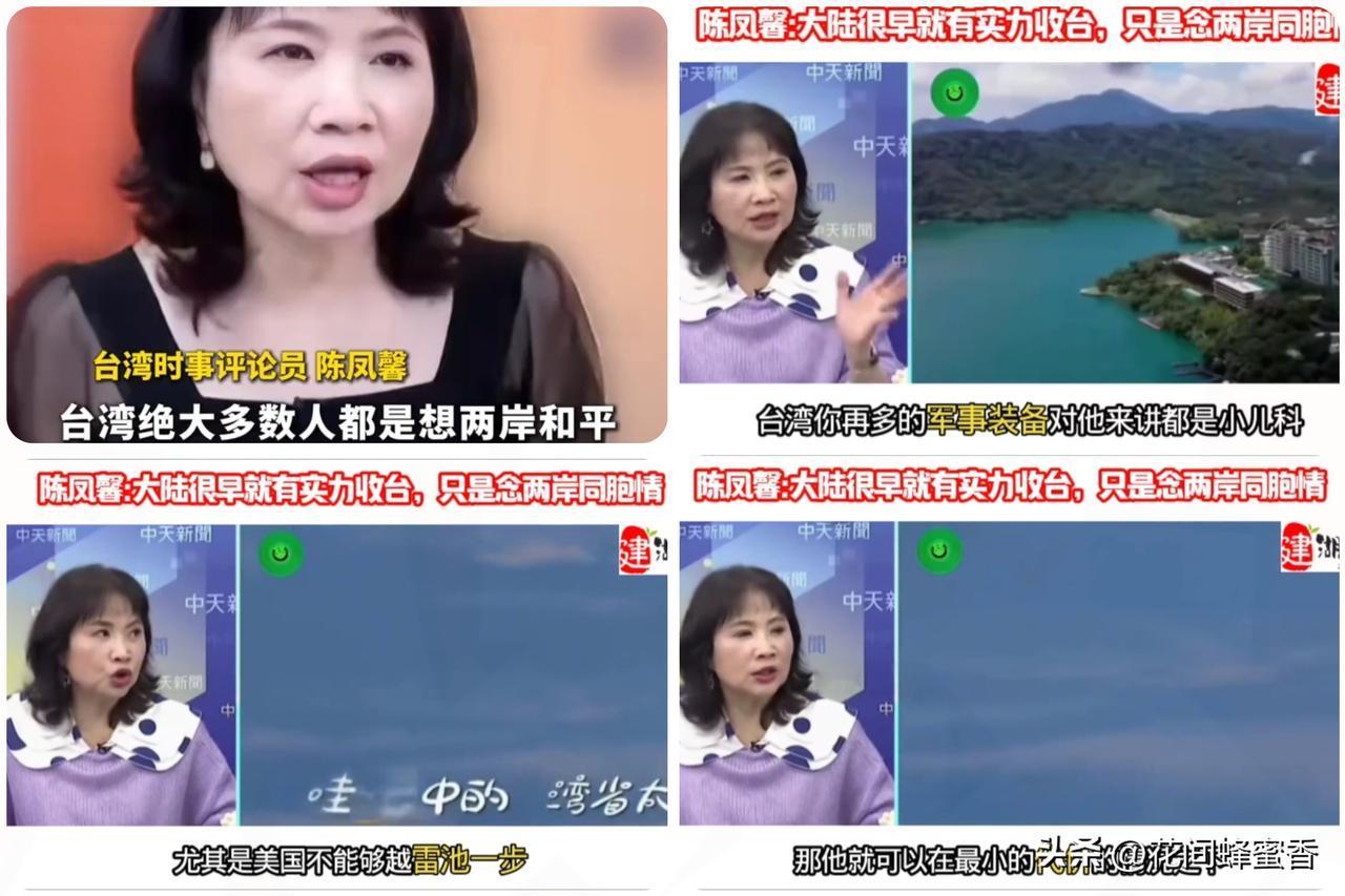 台名嘴陈凤馨 戳破真相!大陆早有 统一实力,迟迟不动手藏深层考量 台湾时事评论员陈凤馨的一番表态,近期引发两岸舆论热议。她直言,中国大陆的真正目标从来不是台湾,台湾的军事装备在大陆面前如同“小儿科”,解放军“正义使命-2025”围台演习中,台湾的一系列操作不过是过家家游戏。 更关键的是,陈凤馨明确指出,大陆很早就具备拿下台湾的实力,无需等到2027年。而大陆迟迟不愿动手,核心是出于多重深层考量:既要阻止美日介入,也要兼顾军事、外交、经济与战后治理,最终目标是以最小损失实现最大成果。 这番言论得到社会各界广泛关注,大陆网友纷纷点赞“说到了关键处”,认为这正是大陆对台同胞情谊的体现;部分台湾网友也感慨“和平统一才是正道”。在我看来,陈凤馨的分析精准戳中了两岸关系的核心,大陆始终对和平统一抱有最大诚意,留给台湾最后的和平机会。 “台独”分子的抗拒终究是螳臂当车,统一是不可逆转的历史大势。赖清德之流若能悬崖勒马,仍能抓住和平的尾巴。欢迎评论区讨论,你认为和平统一的关键是什么?