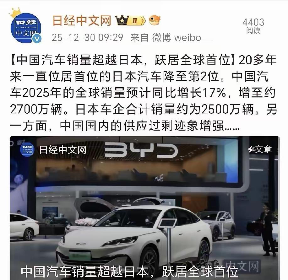 当占GDP10%的支柱产业——汽车产业也被我们超越后,日本经济能拿得出手的已经所剩无几了! 打破尘封40年的汽车出口量记录,以及汽车总销量排第一,这不仅仅是我们各行各业面对西方产业的一个缩影,更是日本经济雪上加霜的最后一根稻草。 当上世纪九十年代《广场协议》签订之后,日本经济进入了丧失的三十年。而当年日本引以为傲的制造业,更是节节败退。从风靡一时的家电到半导体,从造船业到如今仅存的支柱产业汽车,他们的市占份额越来越低,甚至所剩无几。例如造船业,当年最巅峰时期,占据全球50%市场份额,如今仅剩下8%。 如果占据GDP10%的汽车产业,也如造船业这般,那日本在金融市场上及制造业双低迷的情况下,将会成为第一个倒下的主要发达经济体。 大家讨论下,日本会不会成为第一个倒下的主要发达经济体呢?