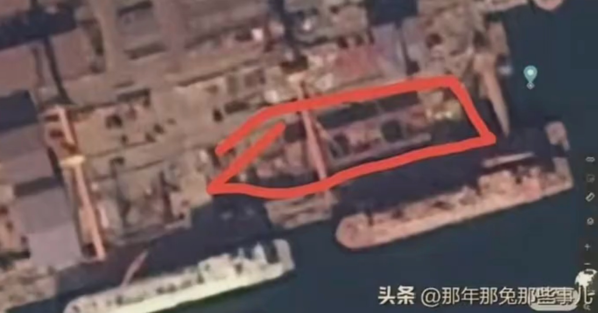 北方某地004新卫星图 舰首、舰尾又多了几个分段模块,建造进度极快!图源见水印烽
