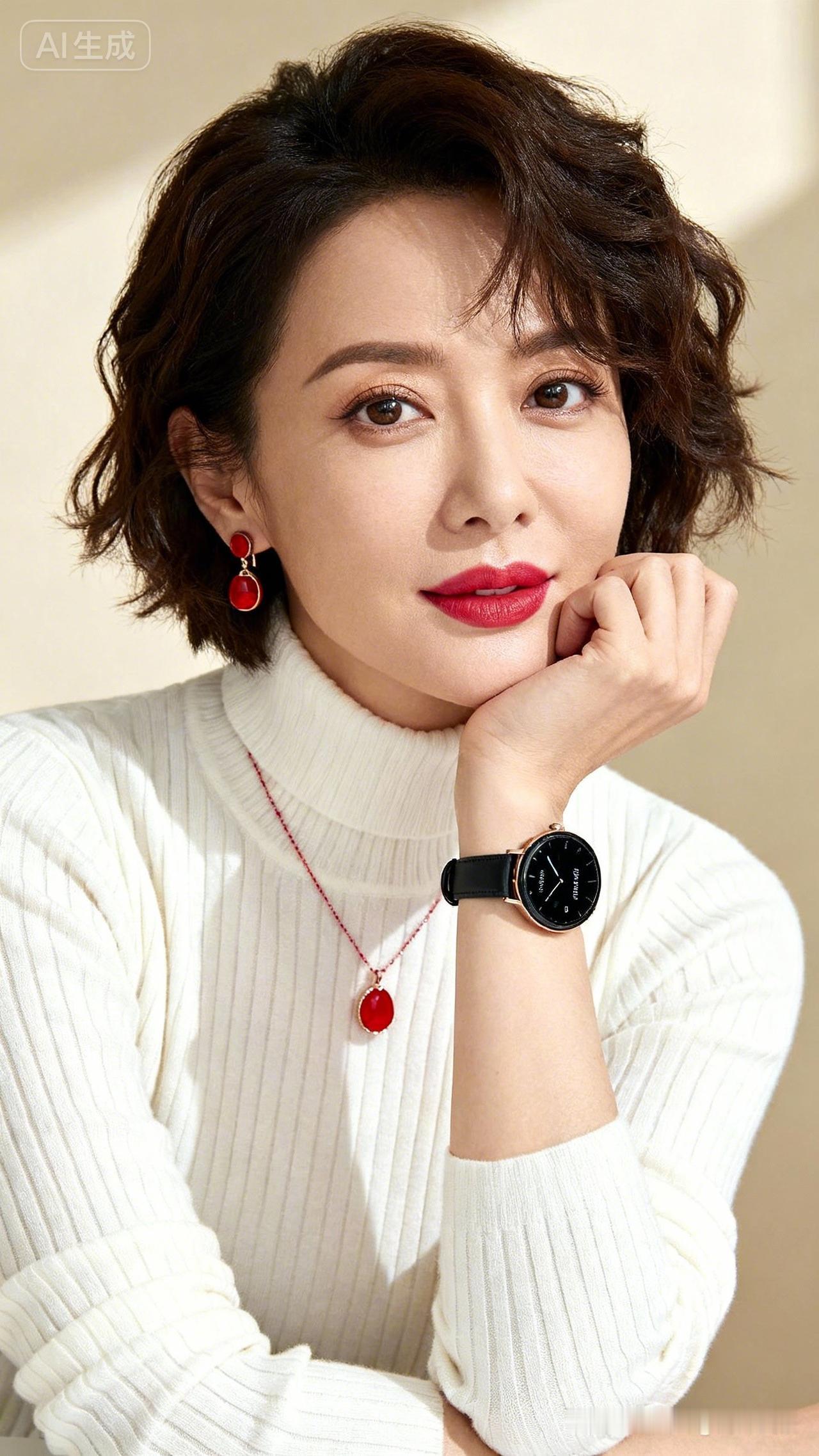优雅红唇,复古耳环,时尚腕表,精致穿搭!