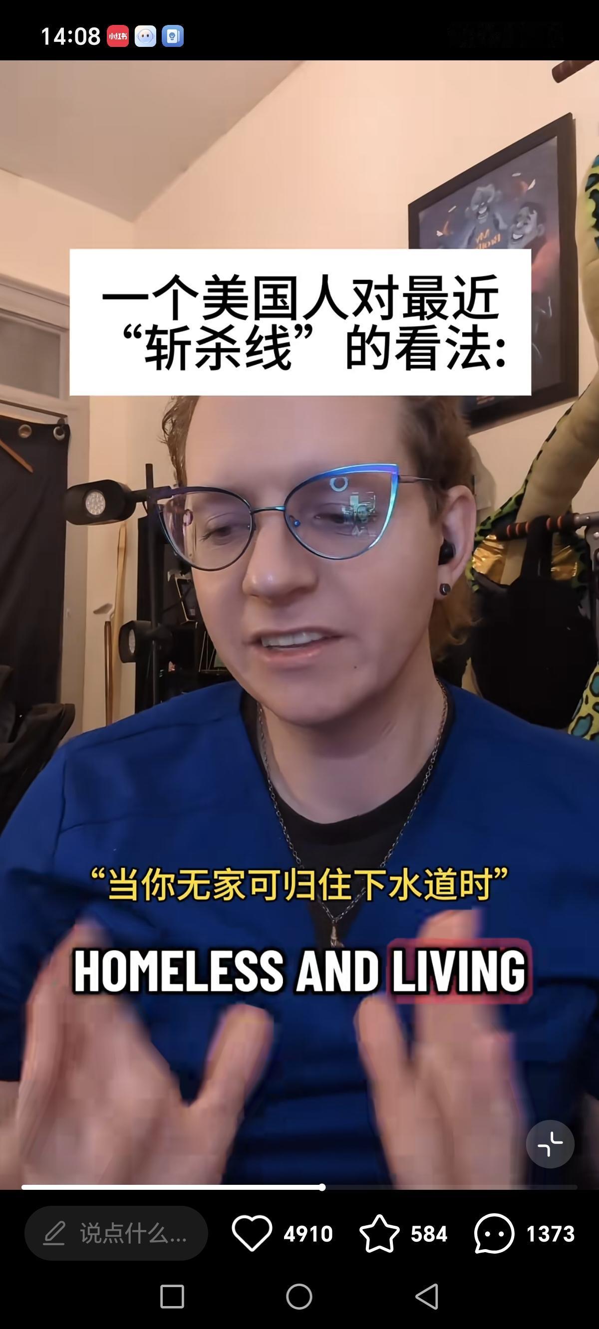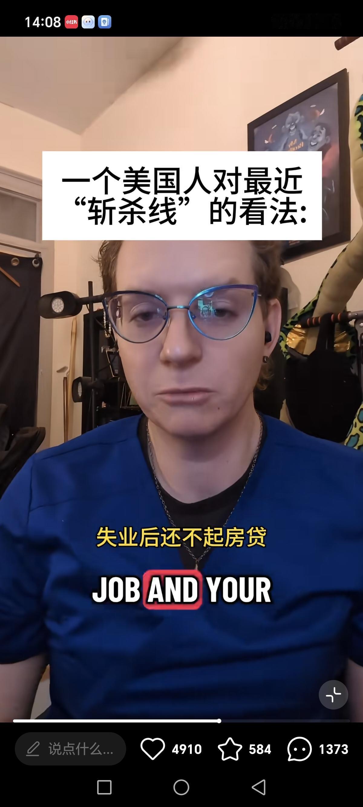 美国人谈到斩杀线时,两度哽咽。 当他说到“斩杀线”这个词时,哽咽了。 当他说出中国网友列举的几个跌入斩杀线的情景时,他说快把他逼疯了,说出“okay”时,他又哽咽了,用手遮住脸部。 他惊讶于中国人精准的总结了他们的处境。中国人以为水淹了胸部(住下水道)才叫斩杀,事实上是淹了脚底板(车坏了就无法开车去做低薪工作)就开始快速斩杀了。 中国人的分析能力、洞察能力快逼疯美国人了!以前的美国人本来过的优哉游哉的,没事时还跑到xhs上来玩。结果人家跑过来一对账,发现自己的国家有大量的问题,天塌了。原来以为的天经地义,现在看来可以不必这样的,还有另外一种选择。 从此以后,美国人终于明白自己在中国和其他国家的人眼里,输的有多彻底。再也睡不着觉,吃不香喝不辣了。