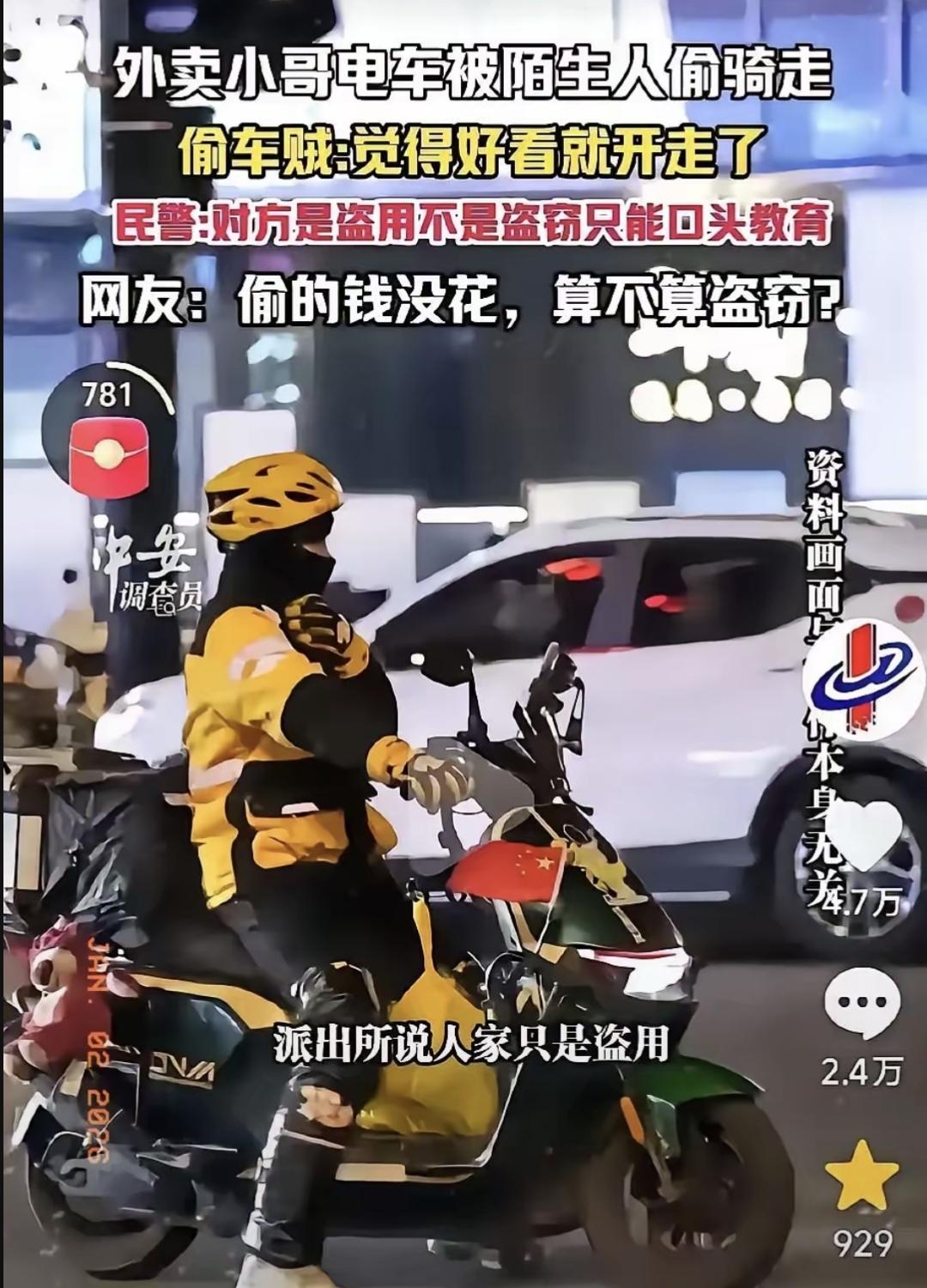 外卖小哥张先生的电动车在送餐时被人骑走了。他报警后,警察很快在学校附近找到了车,钥匙被拔了,车没法启动。 骑车那人说就是看着好看,临时骑一下。可这一“临时”,耽误了小哥接单,损失好几百。小哥找他赔误工费,对方不认。 警察说这不算盗窃,是盗用,证据不足,只能口头教育。小哥觉得不合理,拔了钥匙还不算想占为己有?但他没闹事。 他准备打官司,走民事诉讼要赔偿。也有人私下劝他算了,给钱私了,他没同意。 这事在网上吵起来,有人说小题大做,但对小哥来说,车就是吃饭的家伙。丢了两小时,可能一天就白干。