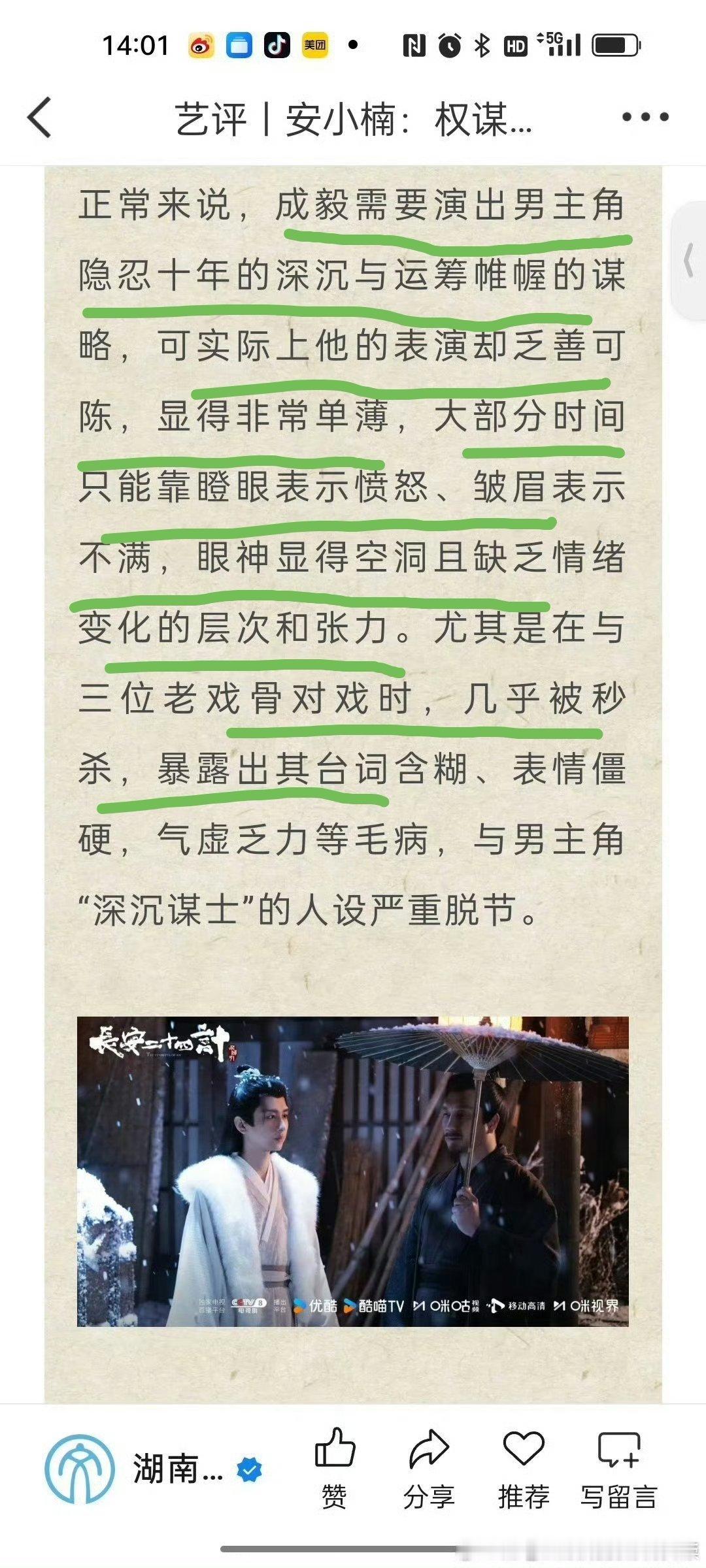 湖南文联官媒: 权谋镜头下的失衡与遗憾!说成毅演技单薄,只能依靠瞪眼表示愤怒,皱眉表示不满,缺乏情绪变化和张力,台词含糊,气虚乏力,表情僵硬,眼神空洞……和老戏骨对戏直接秒鲨!与男主深沉谋士的人设严重脱节