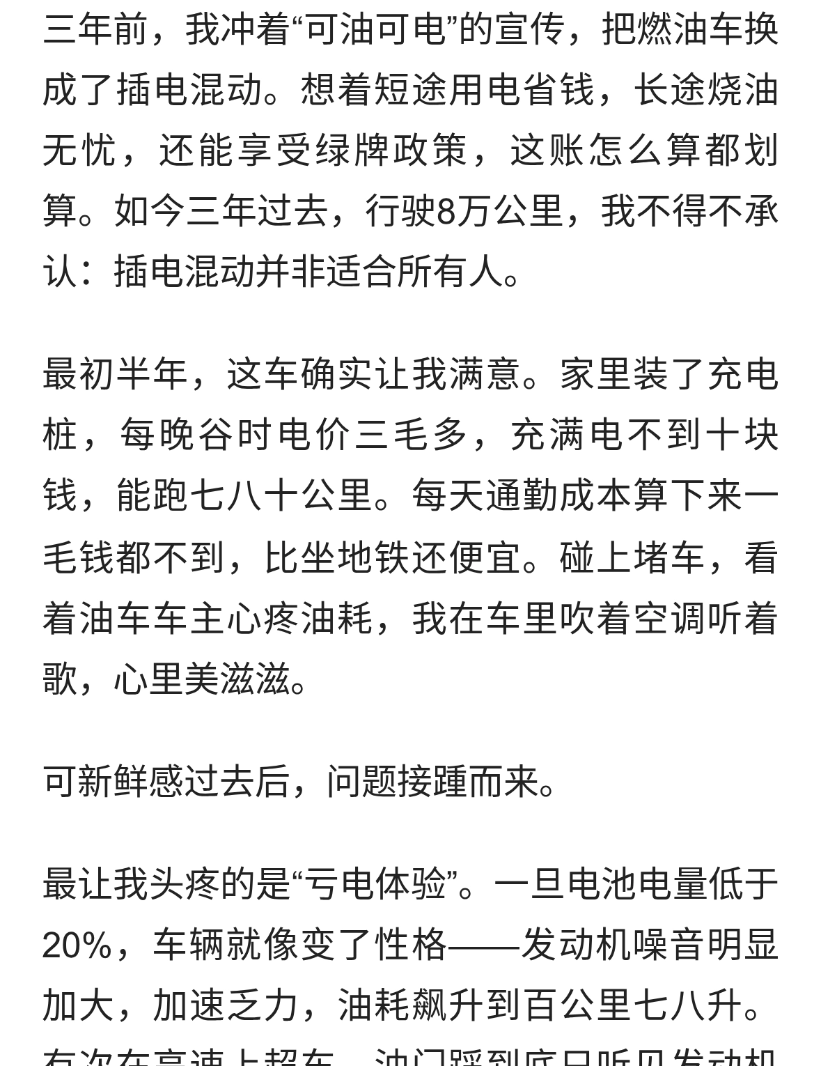 三年插电混动车主实话实说:省下的油钱,最后都贴进了二手车价里