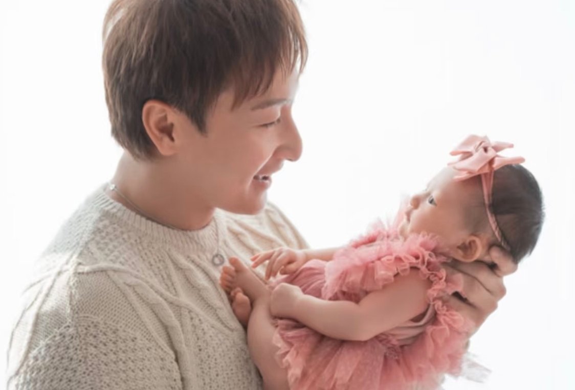 方力申晒一家三口合影,女儿和方力申一个饼印