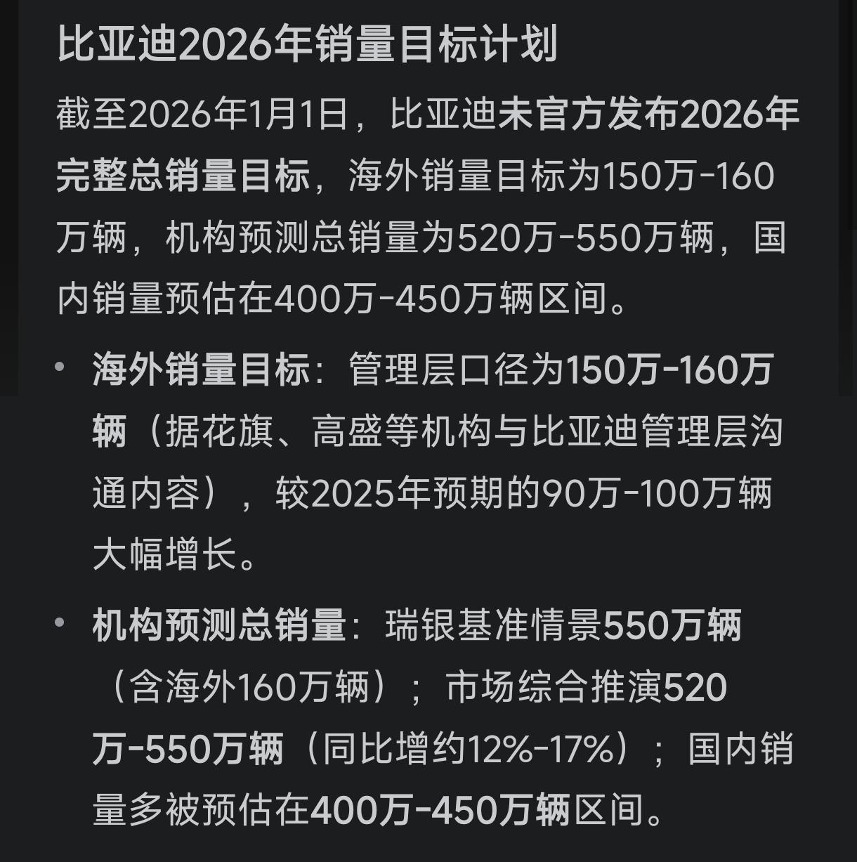 比亚迪在2026年开年第一天就又掀桌子了。试问其它友商怕不怕吧?2025年,比亚迪总销量近460万,又是所有车企销量排名第一。2026年比亚迪销量目标虽然还没有公布,但预计是500万。其实这不是重点,重点是它为了保证2026年有更好的销量所制定的各种措施。2026年从比亚迪出厂的车会带车衣。不要小看这一个小小的举措,这是充分研究用户之后做出来的改变。这只是一个开始,后续会出一系列大招。 大家可以想想看,之前新能源车上车险不顺利的时候,比亚迪马上做出了贴近用户的举措,立刻上马了比亚迪汽车保险业务,一下子解决了用户的烦恼。 比亚迪的做法很像现在去加油站加油免费洗车的策略。 拿我们山东临沂我所在的小县城来说,以前我们县城有不少洗车行,但是自从加油站推出加油免费洗车业务之后,几乎在一夜之间洗车行就消失不见了。反正至少我是几乎再也没有去过洗车行洗车。 以我近20年的开车经验来看,只要车企做出一个小小的对用户友好的改变,影响就会很大。比如之前车企推出买车送汽车贴膜后,那些汽车改装店汽车贴膜的生意一下子就不好做了。 说实话,2026年比亚迪制定近500万的销量目标,完成是很不容易的,它在完成这个目标过程中,肯定会做出一系列为用户着想的措施。 其他车企想跟上比亚迪的步伐只能从贴近用户的角度来做文章了。 那就让时间给我们答案吧!