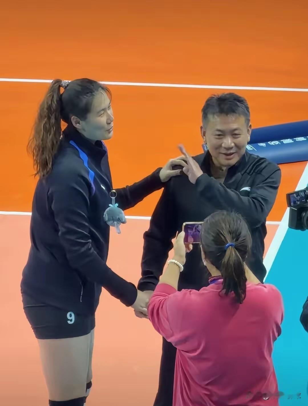 师徒赛场上是对手,赛场下是忘年交,蔡斌慧眼识珠,巴黎奥运周期把王云路提到国家队,发挥了中坚作用,王云路非常感激蔡斌,打球非常卖力! 昨天晚上,上海女排和北京大战五局险胜,王云路替补出场,敢打敢拼,球风依然泼辣,获得队内第三高分14分,只低于打满全场的外援法布里斯和贝吉奇,她23扣9中2失误0被拦、虽然双率不高,但2拦3发,还是起到了一名主攻手的作用。蔡斌也夸赞了王云路的表现,王云路也是拉着蔡斌非常亲切,蔡斌好像还说了这就是我选的国家队球员!
