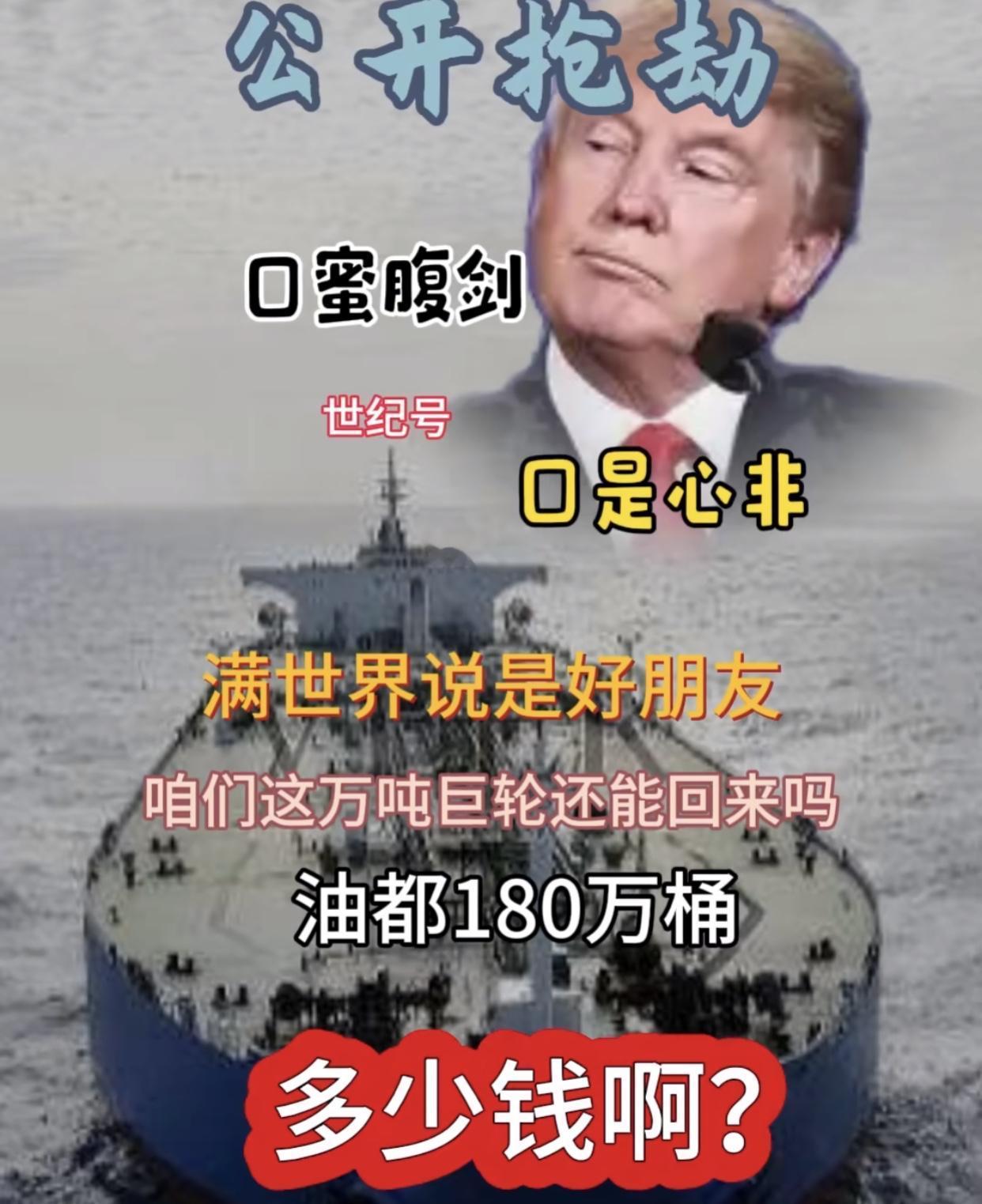 美军公然抢船! 中国油轮被扣12天, 特朗普放话油不还 美军公海硬抢中国油轮! 中国香港运营的“世纪号”,在加勒比海正常运输,被美军拦下扣押。这艘333米长的油轮,装着180万桶委内瑞拉原油,价值数亿,本要运往广东炼厂。 扣船12天,特朗普放话油不还,美军派直升机空降登船,直接把船拖到波多黎各港口,十几天毫无放行动静。 同海域俄轮安然无恙,俄方态度强硬,美军不敢招惹。美方拿制裁当幌子,特朗普还放话霸占船油,明摆着的霸权打劫! 中方硬刚,反制已安排,没喊狠话但实招不断:冻结涉事资产、起诉索赔、暂停合作,这才是大国博弈的智慧! 美军扣押油轮 反霸权