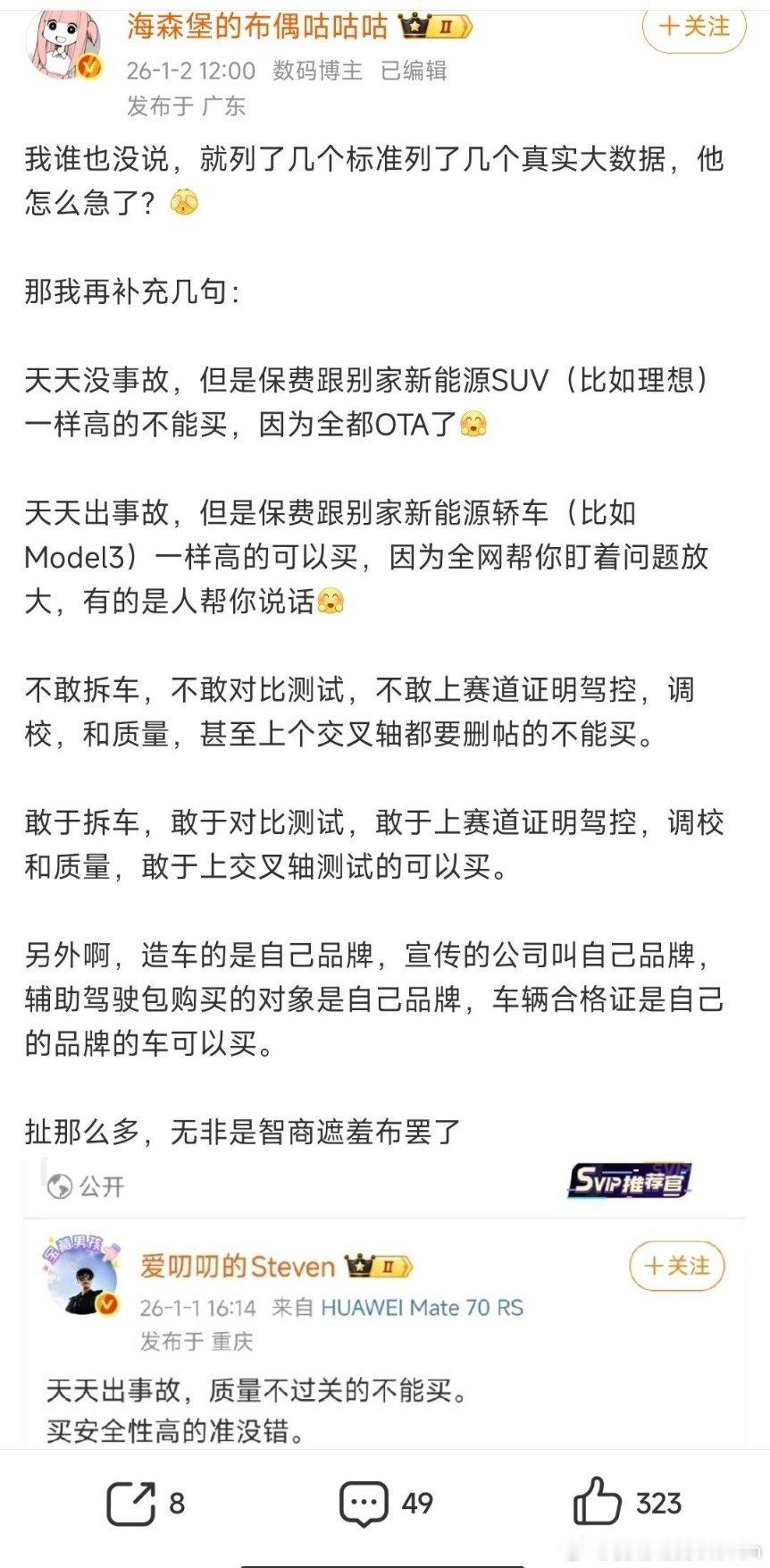咕咕咕每天不是在破防就是在破防的边缘。基本上每次聊天他最终都会导向到保费……现在多了几个拆车……上赛道?交叉轴……造车?这都什么跟什么……就像家里刚通网,前几个自己去看网上视频吧,拆尊界s800的都有,这些不都是自媒体最喜欢搞的……至于造车模式……真的我笑不活了,还在聊这个呢,5界老板现在哪个不是中国汽车一方霸主。要不你试试用你的理论去劝劝他们,万一有效果,这不就把鸿蒙智行瓦解了吗