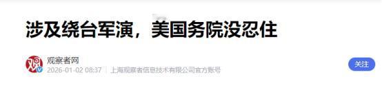 当地时间1月1日,美国国务院就中国人民解放军围绕台湾省进行军演,发表回应称,呼吁