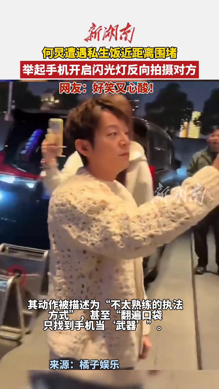 何炅遭遇私生饭近距离围堵,举起手机开启闪光灯反向拍摄对方。网友:好笑又心酸! 橘子娱乐。 近日,一向温和体面的何炅被拍到在公共场合举起手机、开着闪光灯反拍追踪他的私生饭。其动作被描述为"不太熟练的执法方式,甚至"翻遍口袋只找到至"通口袋。这一非常规操作因何炅一贯温和的形象形成强烈反差,引发"又心酸又好笑的舆论反应。