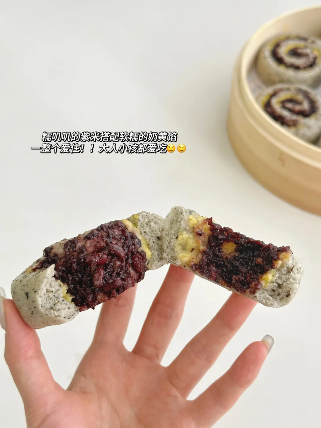 用料多多口感丰富,糯叽叽的紫米红豆馅搭配奶香浓郁的奶黄馅,一口下去太满足啦~[派对R][派对R]