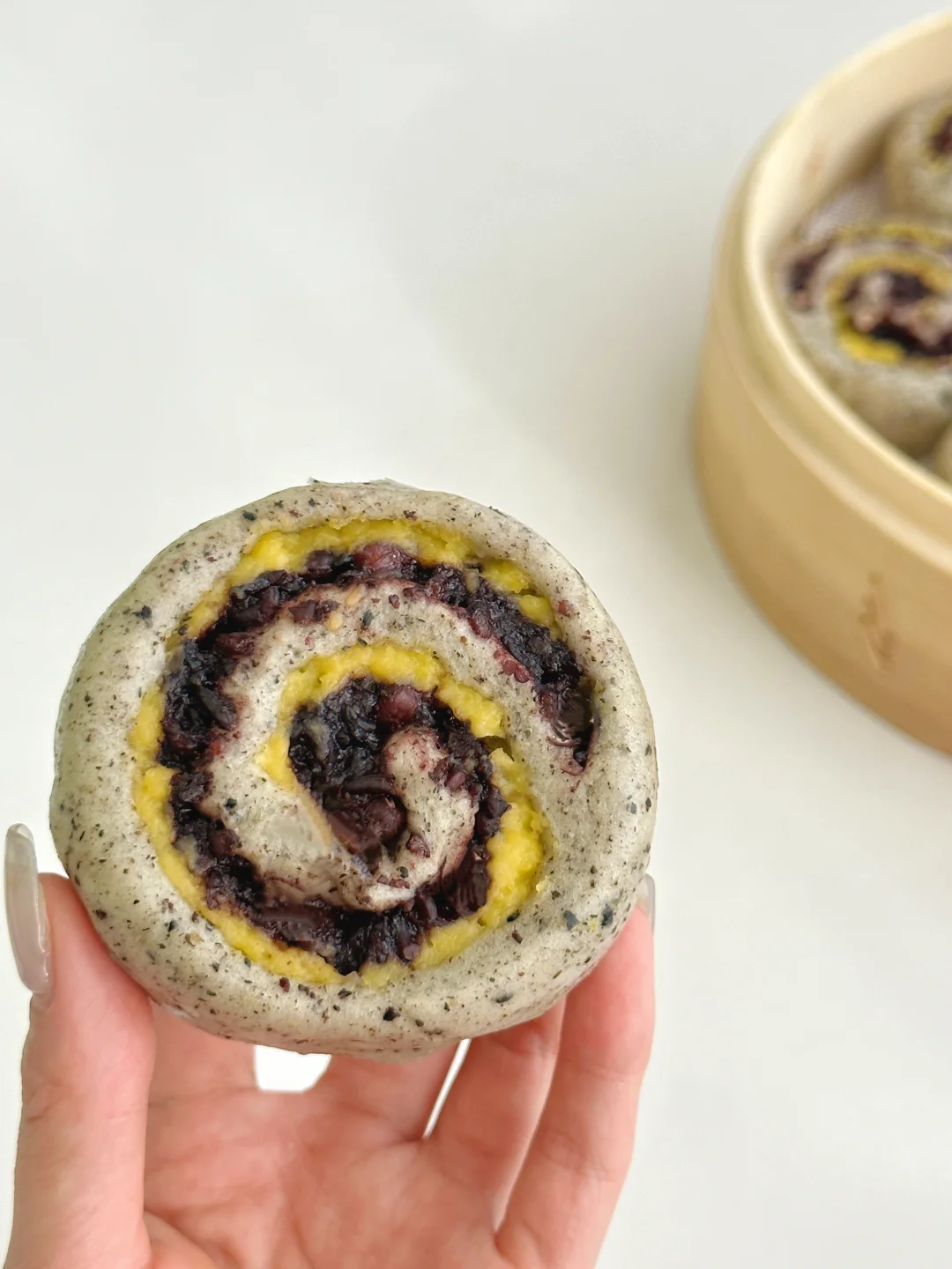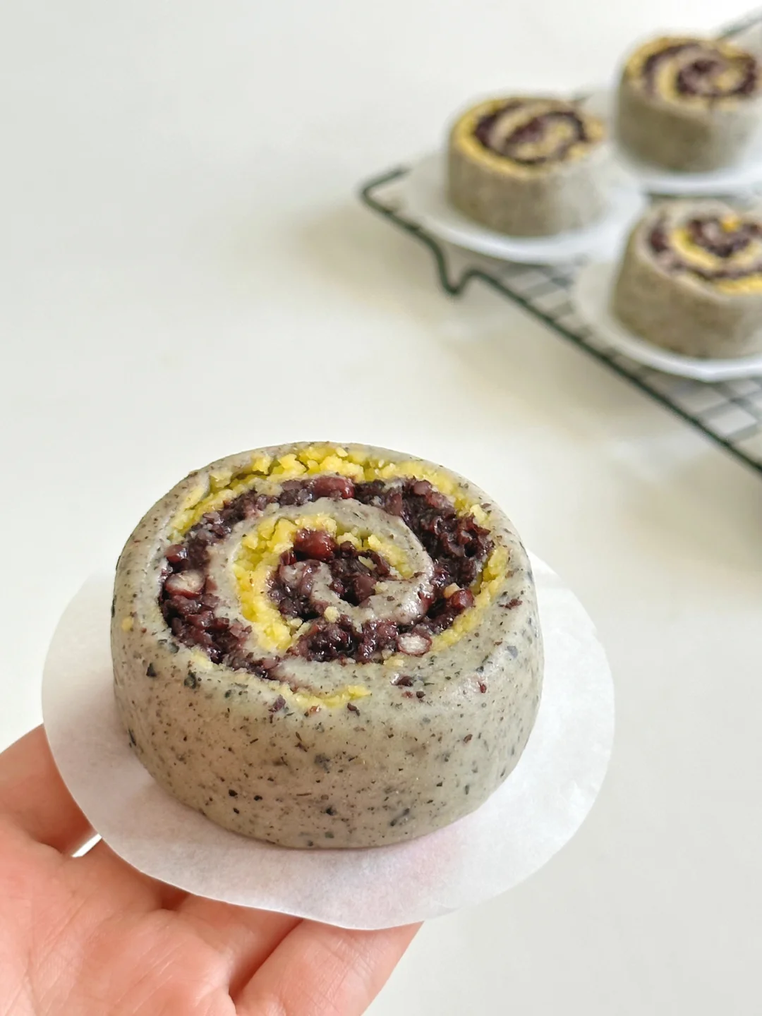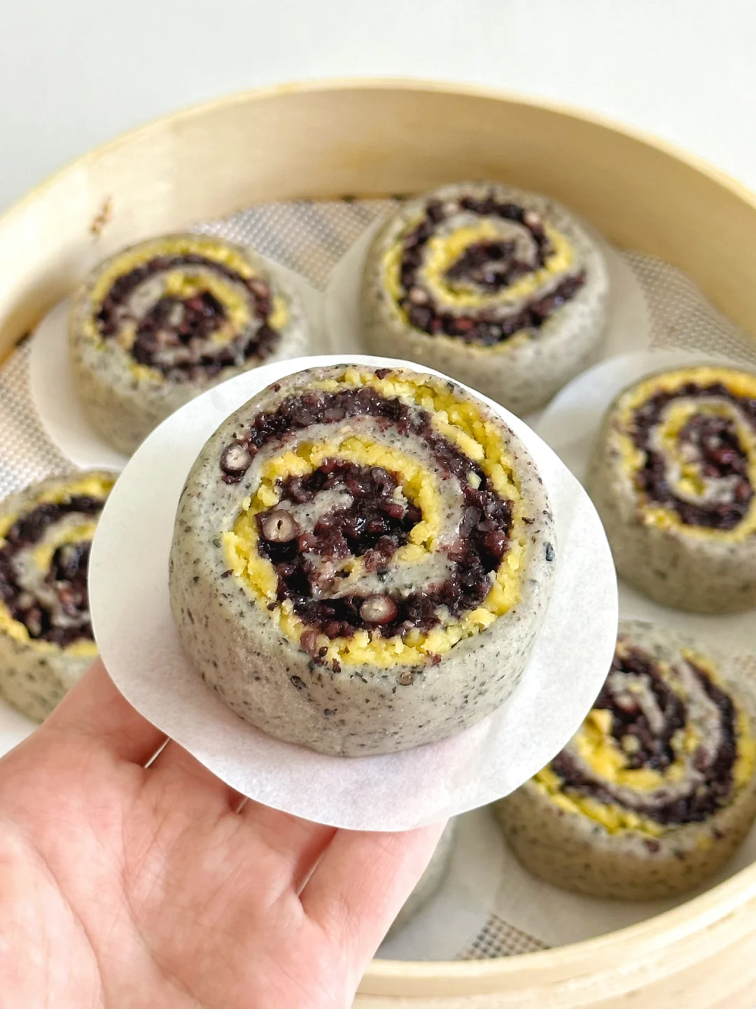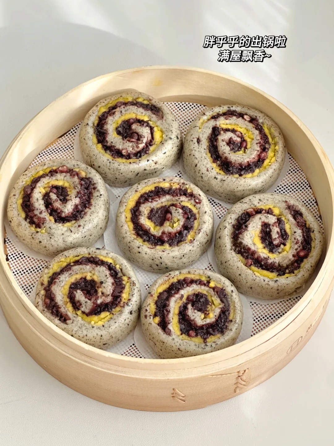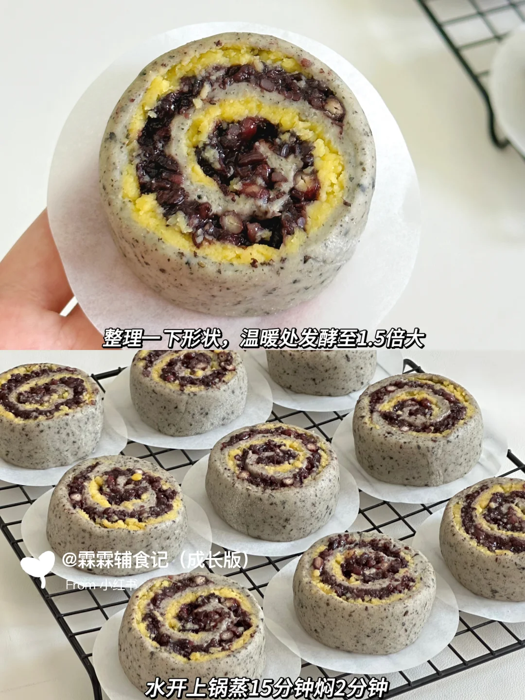 今天心血来潮的做了奶黄紫米馒头卷