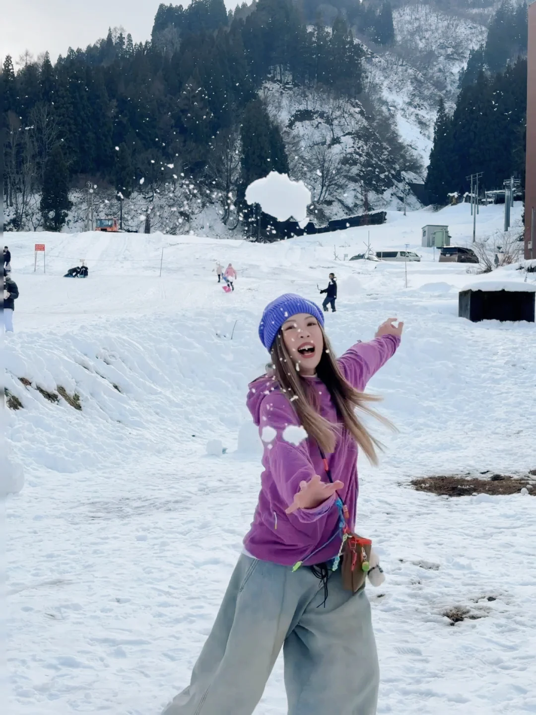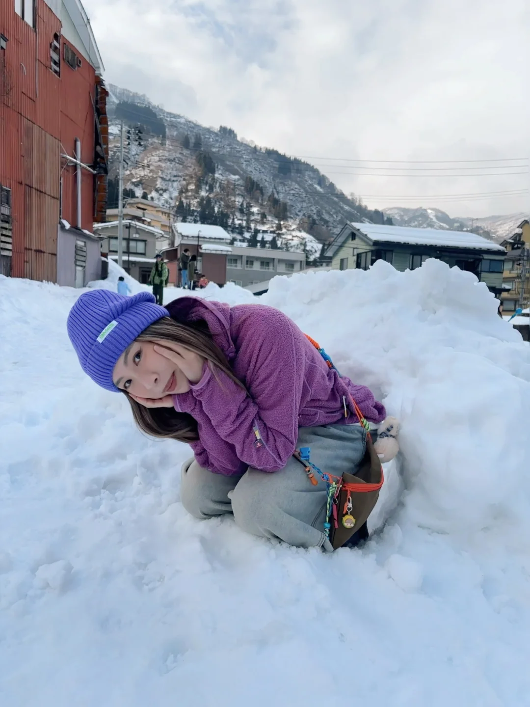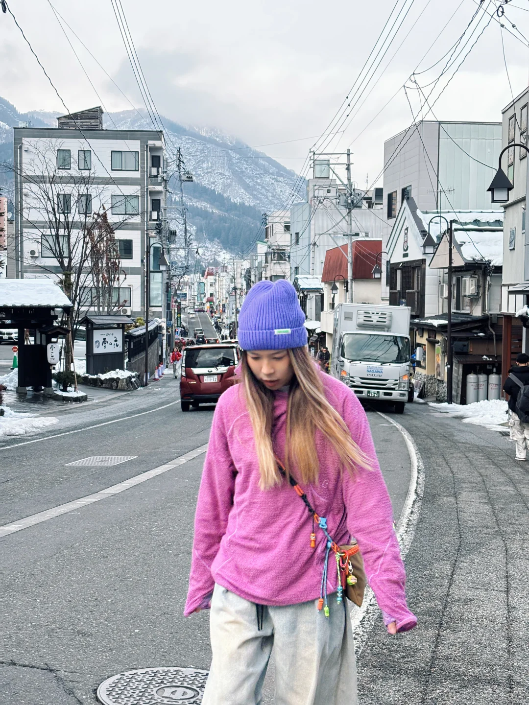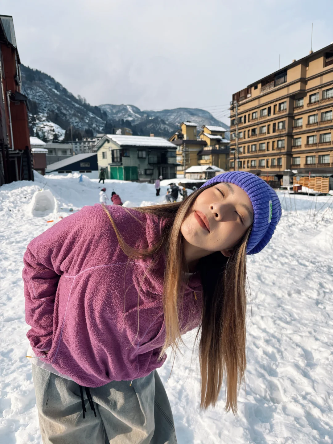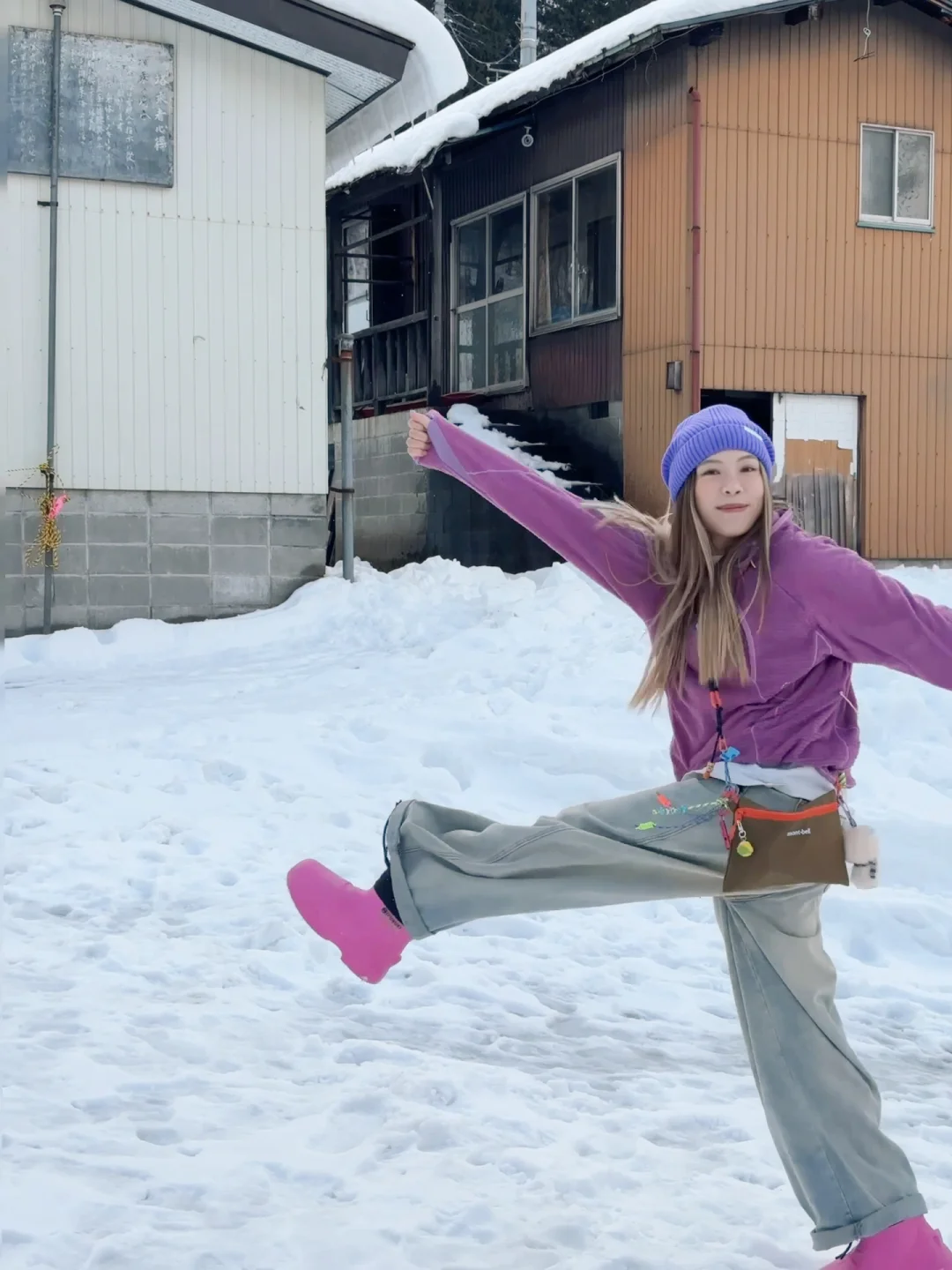 在汤泽厌倦了滑雪的一天 就沿着温泉街随便走走 钻进小孩哥搭的迷你城堡 尝试堆雪人并火速放弃 汤泽今年雪好少 但依然很漂亮 气温很高 对究极怕冷星人极为友好 穿个Primaloft就可以出门 2026的第一天 对于这套莓子色穿搭极为满意🥰