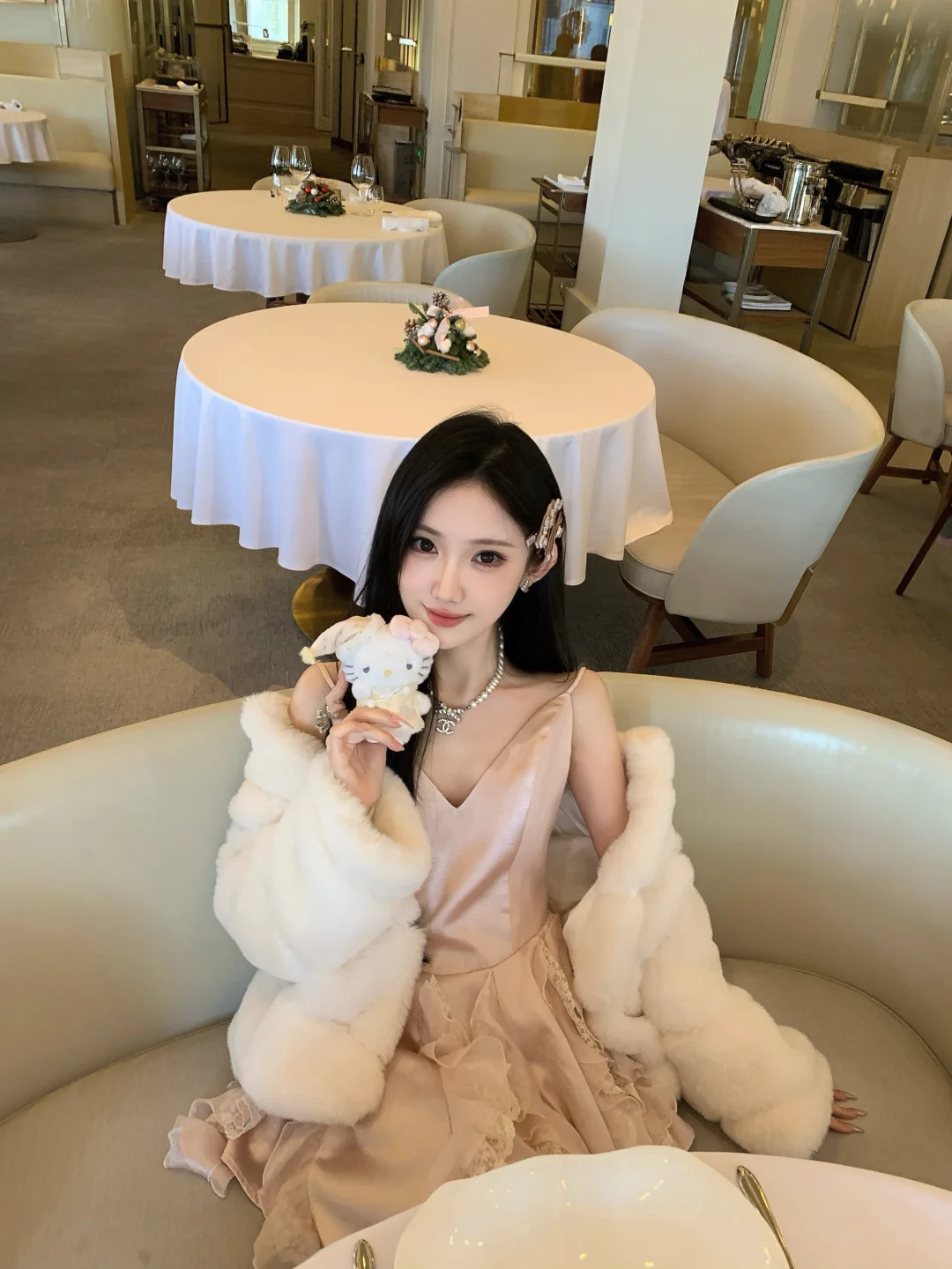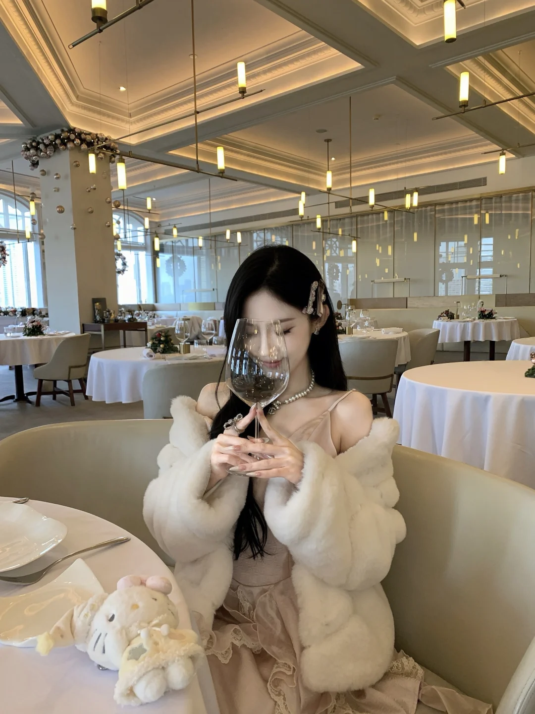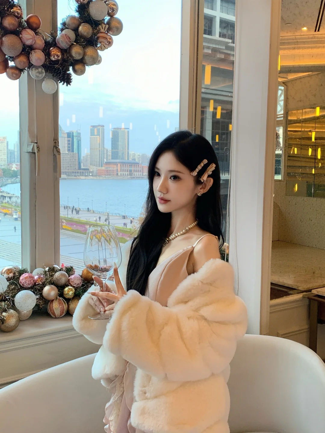 黑色皮质连体裙勾勒利落线条,过膝皮靴踩出酷飒气场,简约背景里尽显冷艳魅力。高级