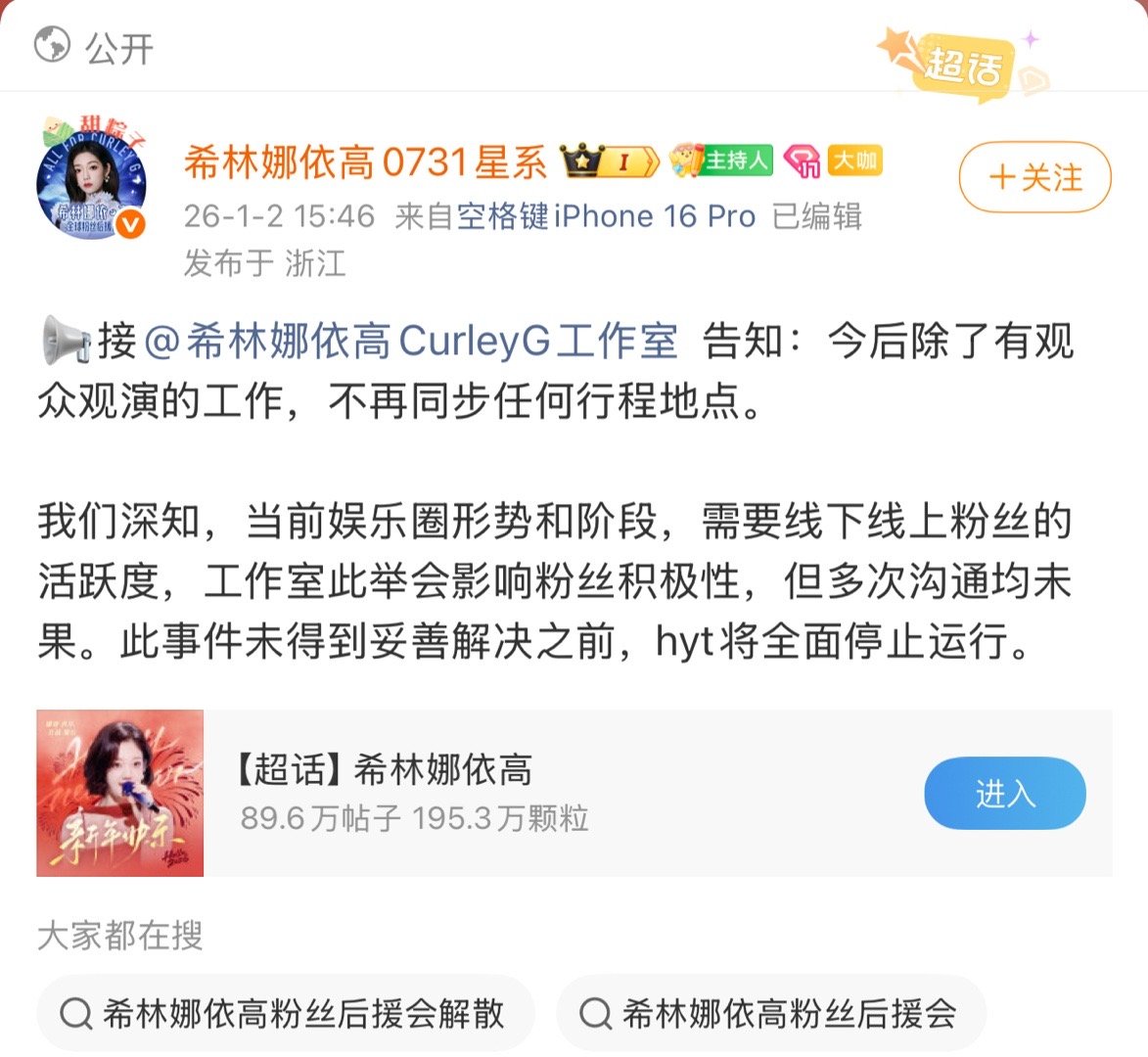 希林娜依高对接称不再同步任何行程地点 希林娜依高方称不再同步任何行程地点 希林娜依高工作室不再同步任何行程地点
