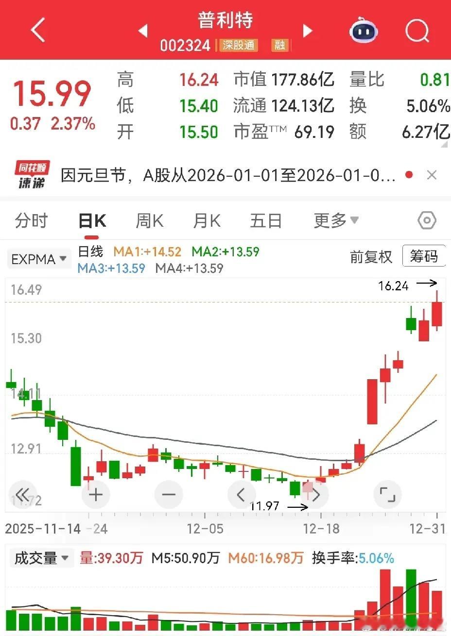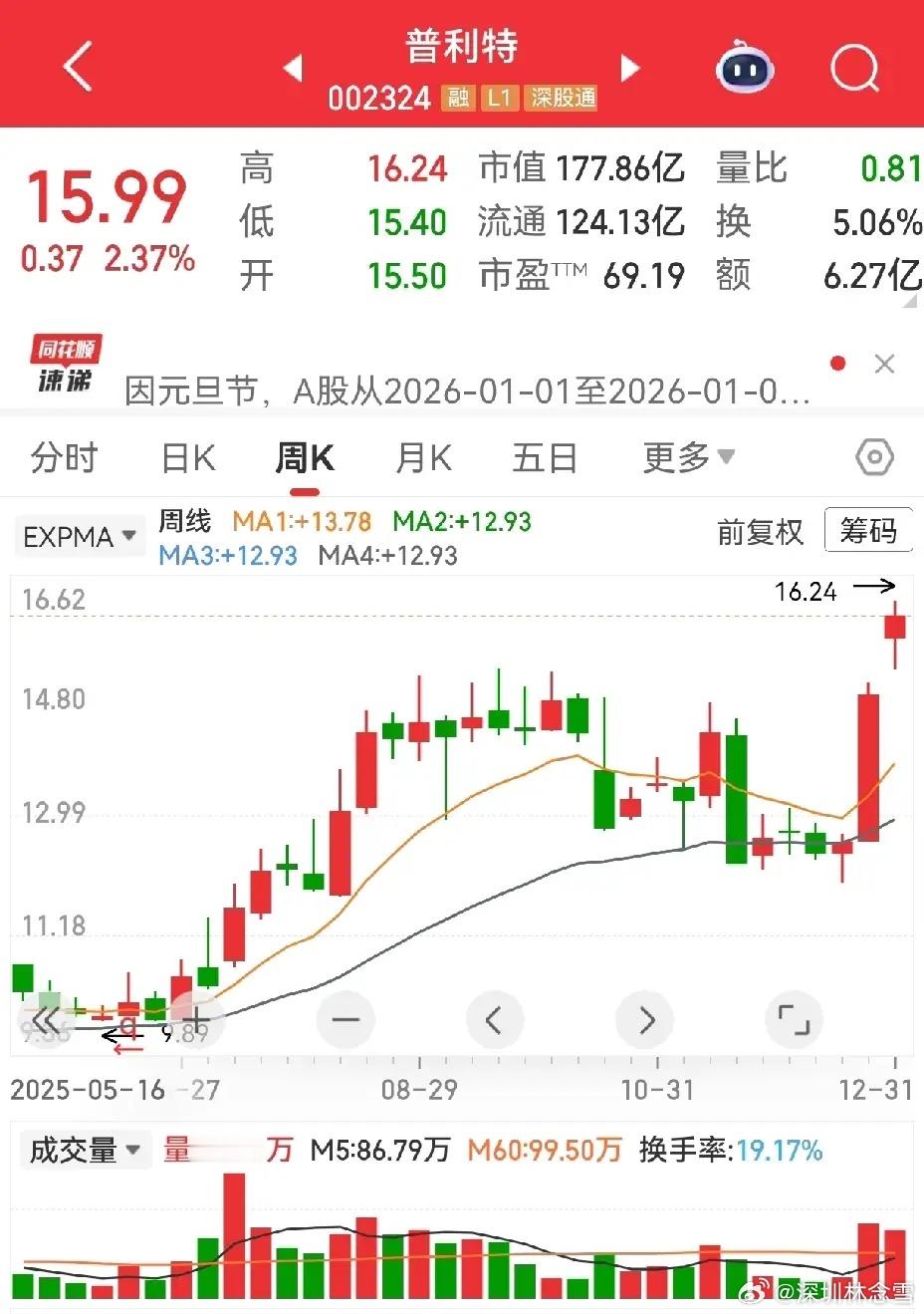 看着涨高就不敢下手,往往是踏空的开始!普利特周线突破前高平台,日线涨停后走出温和放量的空中加油形态,连续5天量能稳定在5%-10%区间,筹码结构暂无明显松动迹象。是不是和上周的智光电气有点神似?节奏对了,吃肉就是水到渠成。
