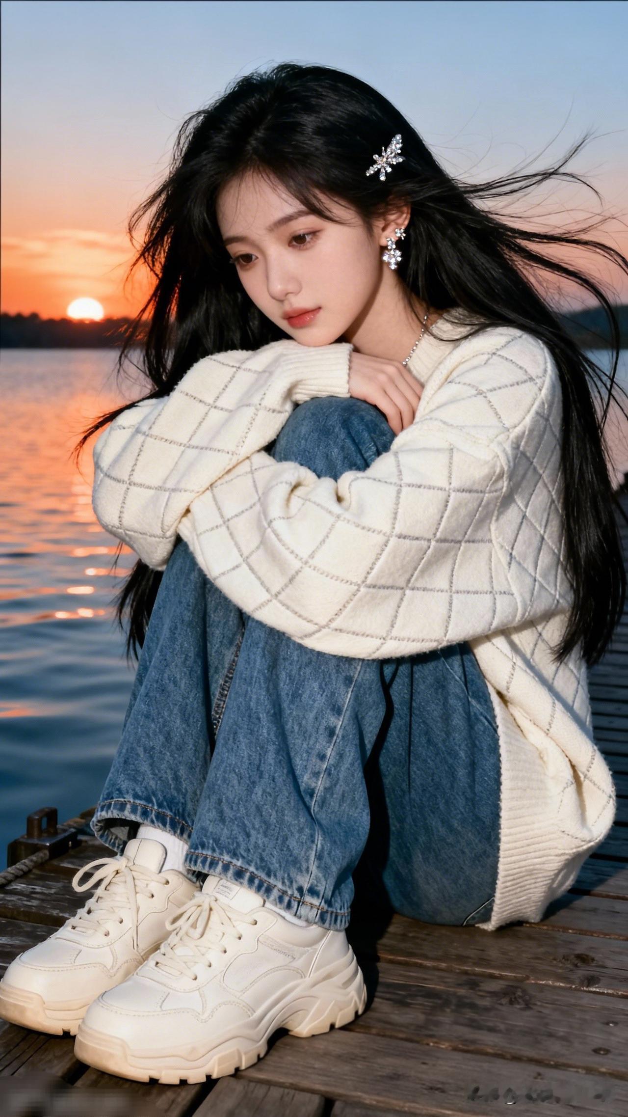 落日余晖映水边,独坐思量心自闲。寻找镜头的美 落日余晖下的少女,温柔沉思,岁月静好。