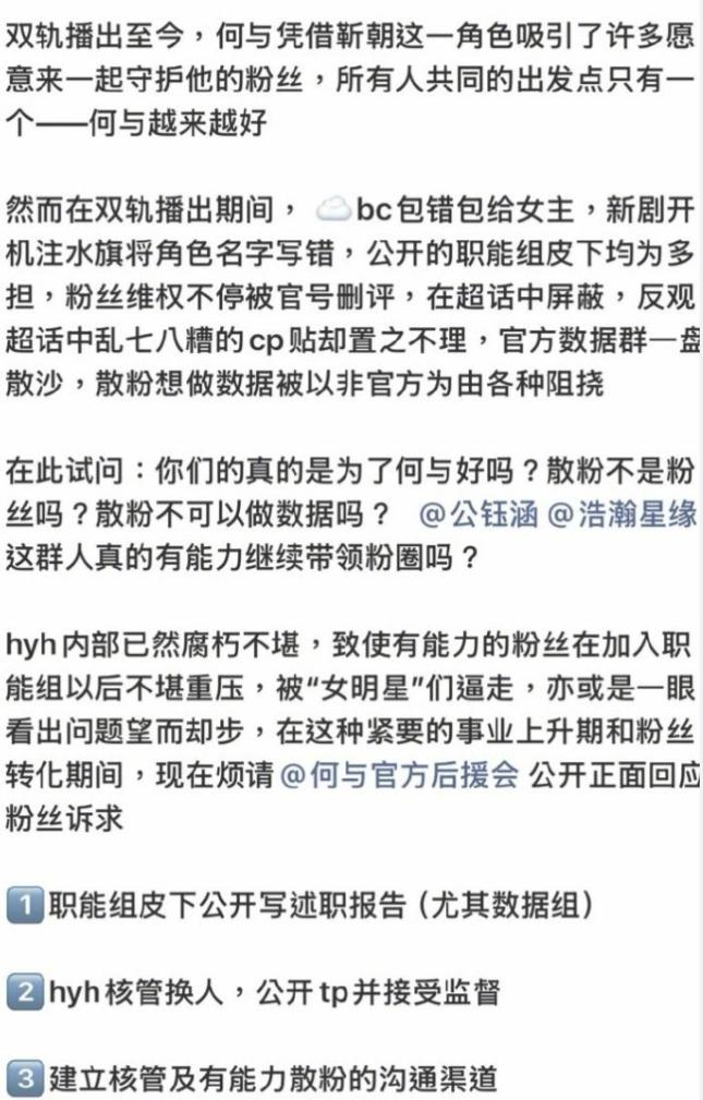 何与时真的涨粉了 现在散粉已经开始手撕何与的粉丝后援会了,他们觉得后援会业务能力太废了,配不上现在的何与,害怕后援会的不作为拖何与后退,所以要求换一批更有能力的粉丝管理后援会。