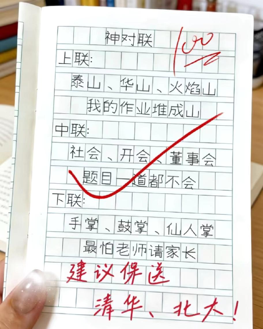 小学生的神对联火了!泰山华山火焰山配作业堆成山,网友:建议真保送