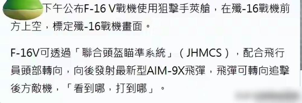 台军公布F-16V战斗机“锁定”歼-16战斗机画面,事情大了。最近这事儿在军迷圈里讨论挺多,我也跟着查了点资料。首先得说明,台军这次用的是“狙击手”光电吊舱拍的画面,这东西主要功能是红外/可见光成像、激光测距,给精确制导炸弹指路的,和火控雷达的锁定完全两码事——火控雷达锁定是能直接引导导弹攻击的,光电吊舱可没这本事。 那为啥台军要这么宣传?说白了可能就是刷存在感。咱都知道,平时伴飞监视的时候,雷达屏幕上就一个个光点,根本看不清具体型号,台军估计是想靠这种“摆拍”证明自己“能应对”。但话说回来,咱也不能轻敌。F-16V毕竟是升级过的,台湾空军这些年也跟着美军练过,多少有点底子。万一真有个手抖走火的情况,咱得提前想好应对招儿。 战略上咱当然得藐视,但战术上必须重视。就像下棋,不能光看对手明面上的棋,得把可能的后手都想到。咱们的歼-16啥水平大家有数,但练兵备战这根弦可不能松。毕竟真到了关键时候,准备充分的才是赢家。