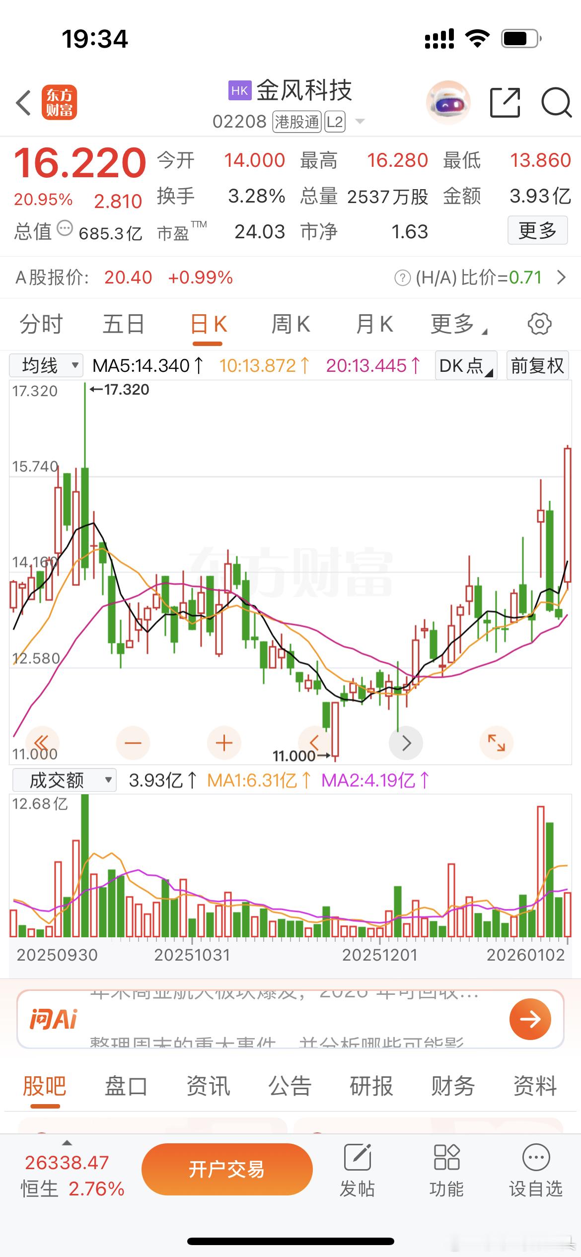 兄弟姐妹们还记得莎莎给你们说的金风科技吗? 我一直说中长线没有问题,这不12月31号然后的蓝箭消息,现在完全超预期,今天港股的金风科技大涨20.95%!这证明莎莎个的判断没有错,老铁点赞评论888