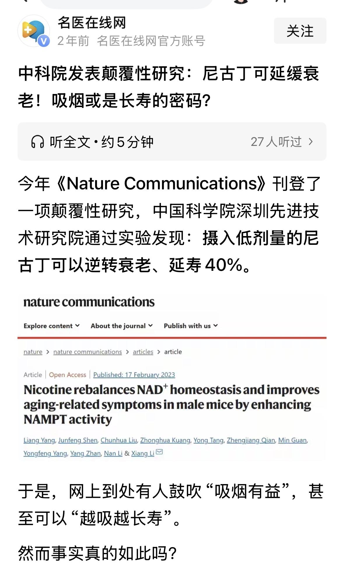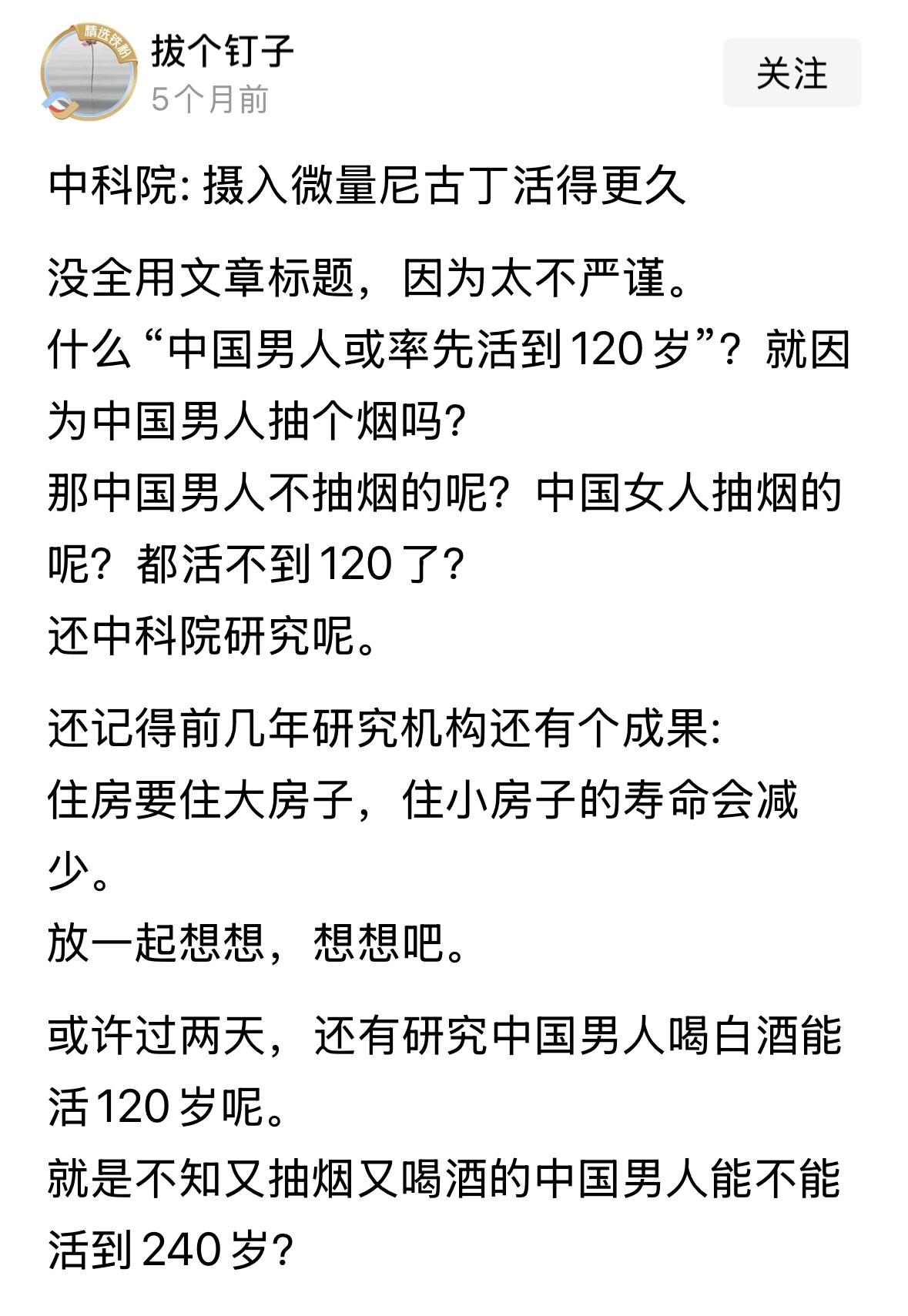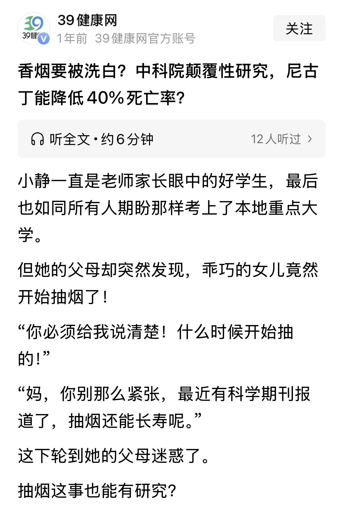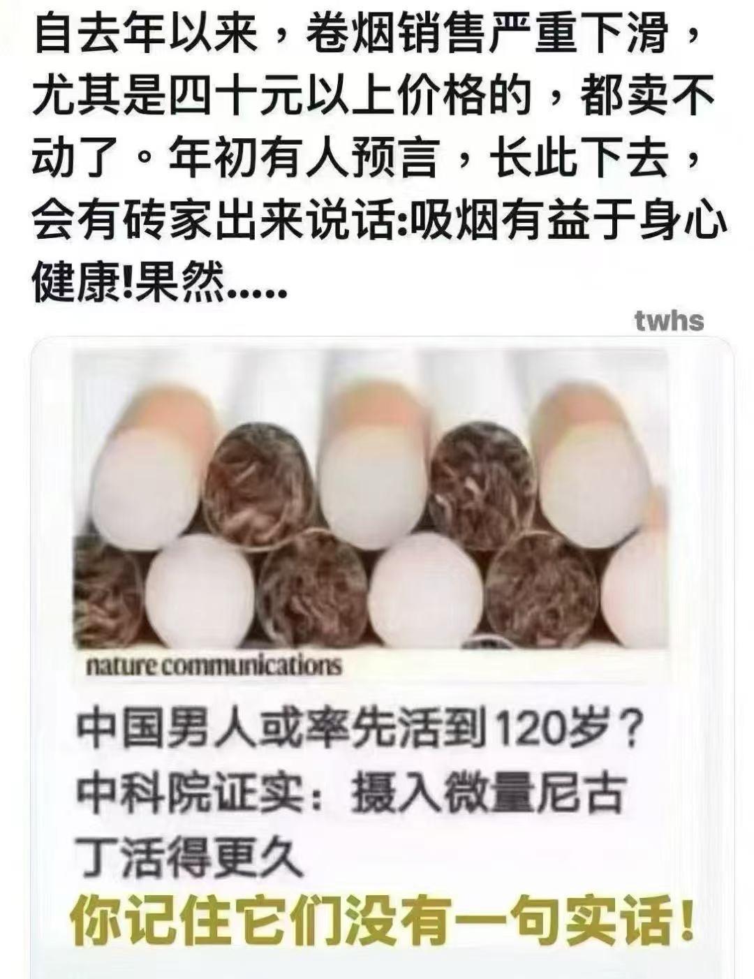 查了一下,中科院确实说过,适当吸烟有益健康,不过不是最寂寞说得,事两年前的研究报告,那烟盒上标识的‘吸烟有害健康’,应该改成“吸烟有益健康”,会议室、公共场合禁止吸烟的规定改不改?不改的话,不符合科学道理啊?不讲科学,不合适啊……