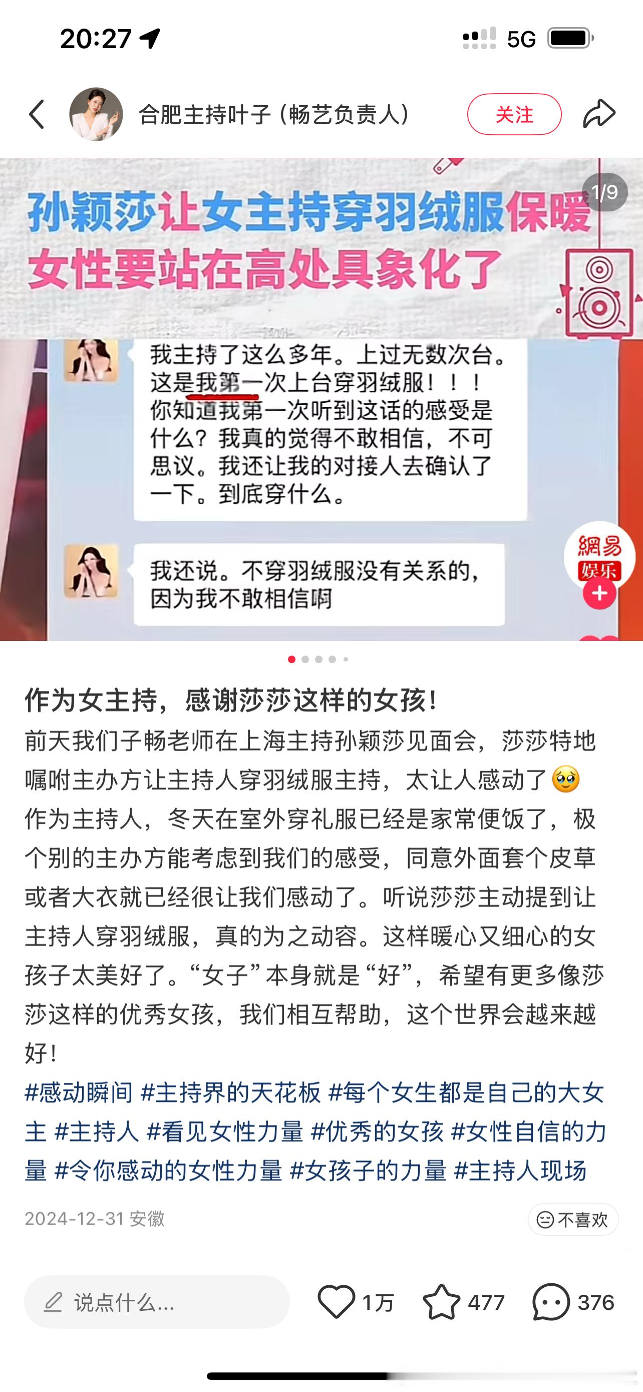 好想哭呀,2024年12月31号发了看到孙颖莎让朋友穿羽绒服主持被感动了,2026年1月1号就看到自己和身边的姐妹朋友都因为这件事都穿上羽绒服了孙颖莎