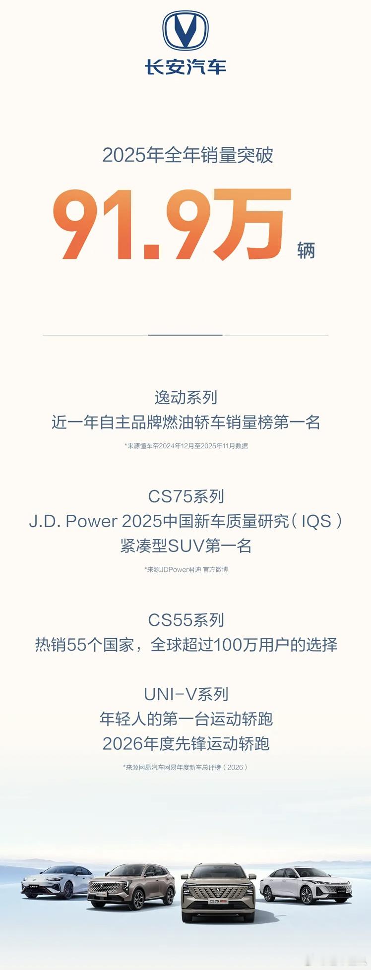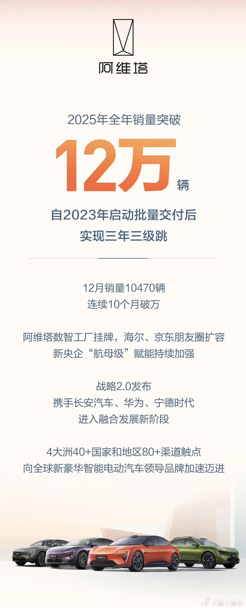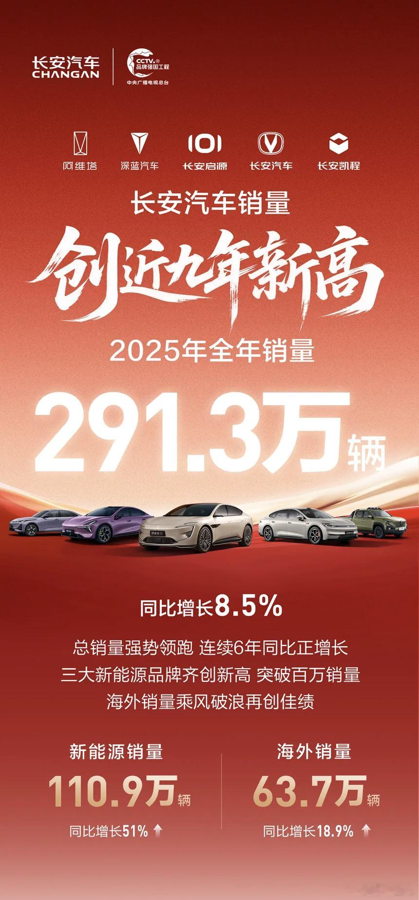 长安汽车五大品牌全年销量291.3万辆,同比增长8.5%。“新央企”这一年的成绩单,可圈可点。其中代表高端化的阿维塔品牌,全年销量超过12万,月均过万了。这一年,阿维塔跟合作伙伴的全新战略,也让阿维波进入全新阶段:增程版本全面带动增量,还带动了海尔,京东加入朋友圈。同时,长安强大的海外资源,也用在了阿维塔上。除此之外,长安还是央国企集团中,主流品牌电动化非常优秀的一个:启源全年41.1万,深蓝全年33.3万,高低定位,来拿主流市场。并且,长安汽车在海外市场,也是目前中国企业的头部水准,全年累计海外销量63.7万,同比增长18.9%。新一年,继续期待长安的表现。销量榜汽车销量长安汽车