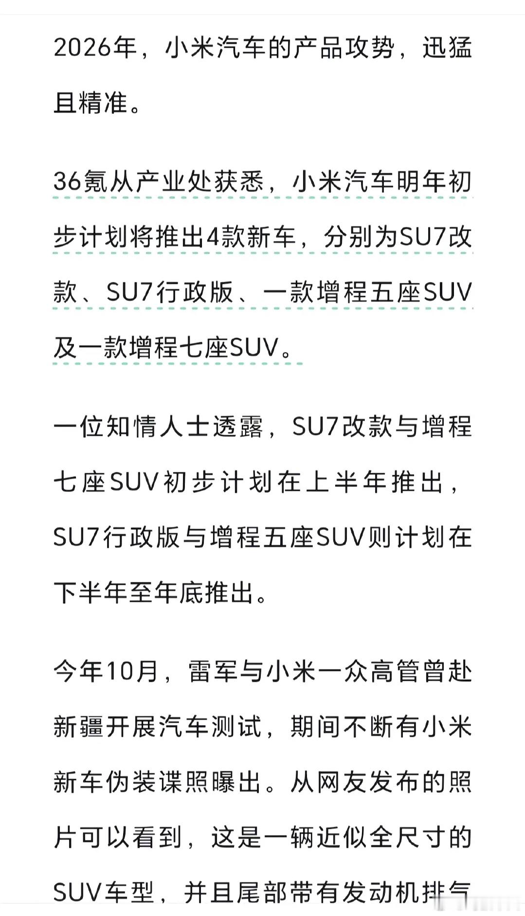 小米明年的几大新车规划,增程SUV、行政轿车、性能SUV......直接向三巨头和鸿蒙智行这种头部玩家发起冲锋,就看小米如何定价并且解决多车型的产能压力了,可以期待一下......新车新车小米汽车小米汽车